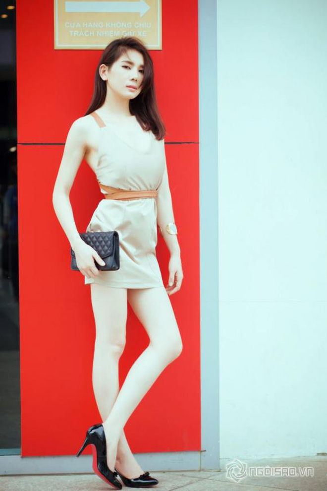 Phần thân trên được thiết kế phá cách điệu đà bằng chi tiết dải lụa màu xanh ngọc, bên dưới xẻ tà cao giúp cô khoe khéo đôi chân dài hút mắt. Chiếc ví Louis Vuitton "khư khư" trong tay giúp nàng Hậu thêm phần sang chảnh. Nhưng để ý kĩ bạn sẽ thấy, Lã Kỳ Anh đã vô tình để lộ "phụ tùng" nâng đỡ vòng 1 mất rồi...