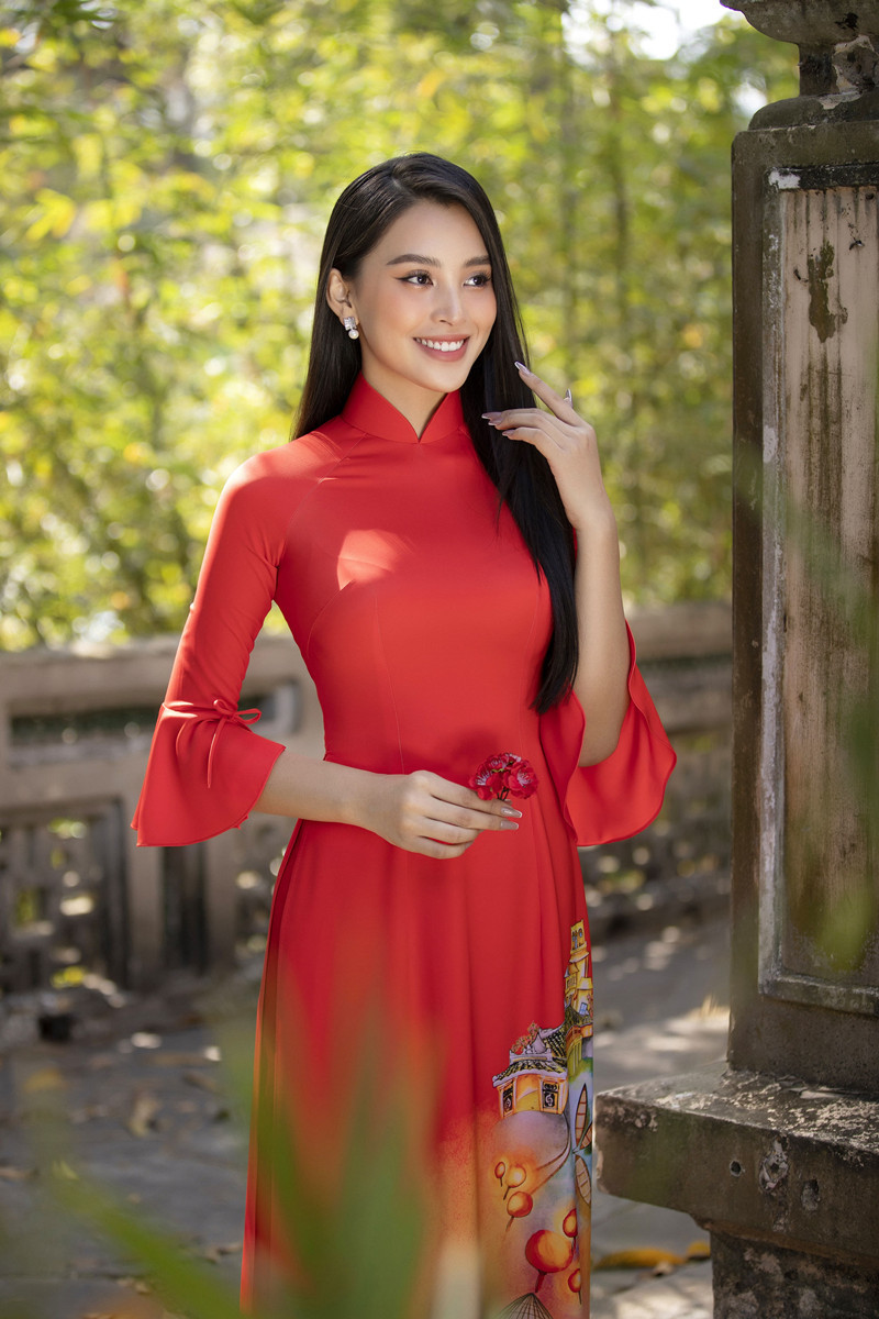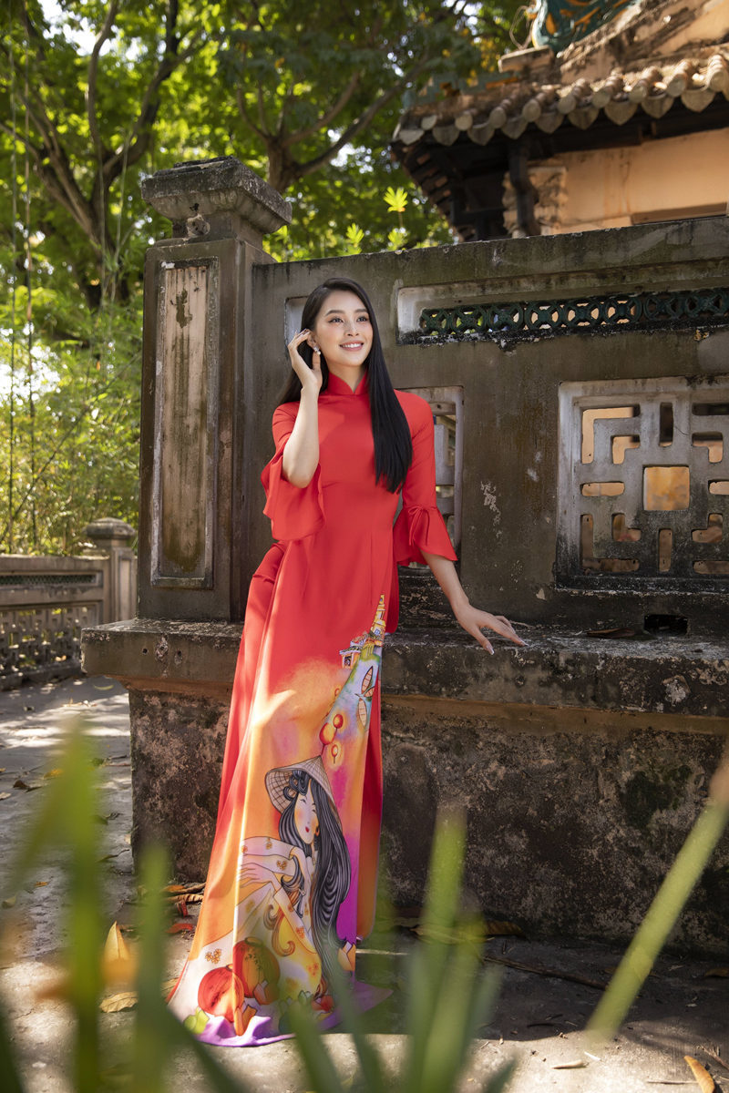 Hình ảnh các thiếu nữ với bối cảnh thiên nhiên của các vùng miền Việt Nam được thiết kế hài hòa trên những tá áo dài mang sắc hồng, đỏ tươi tắn trong bộ sưu tập “Xuân Thì” của nhà thiết kế Ngô Nhật Huy đã được hoa hậu Tiểu Vy giới thiệu qua bộ ảnh đậm đà phong vị truyền thống.