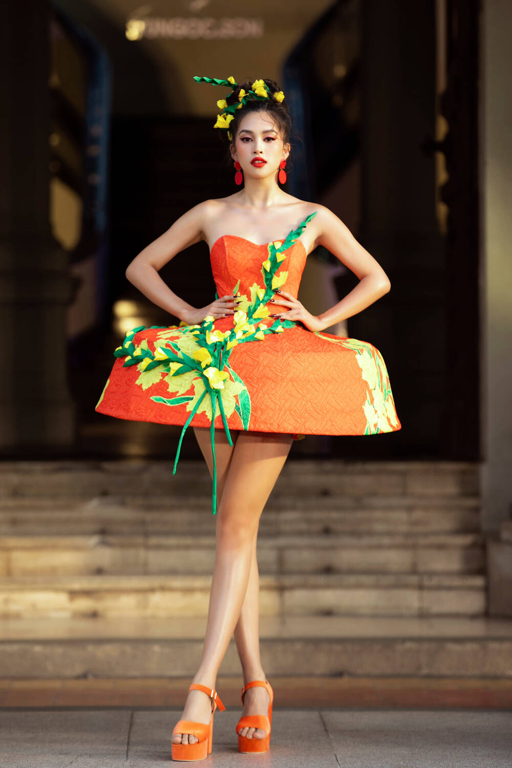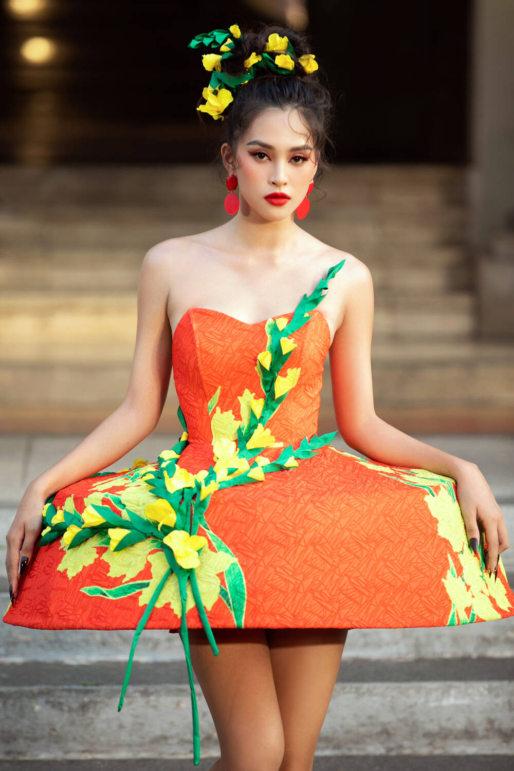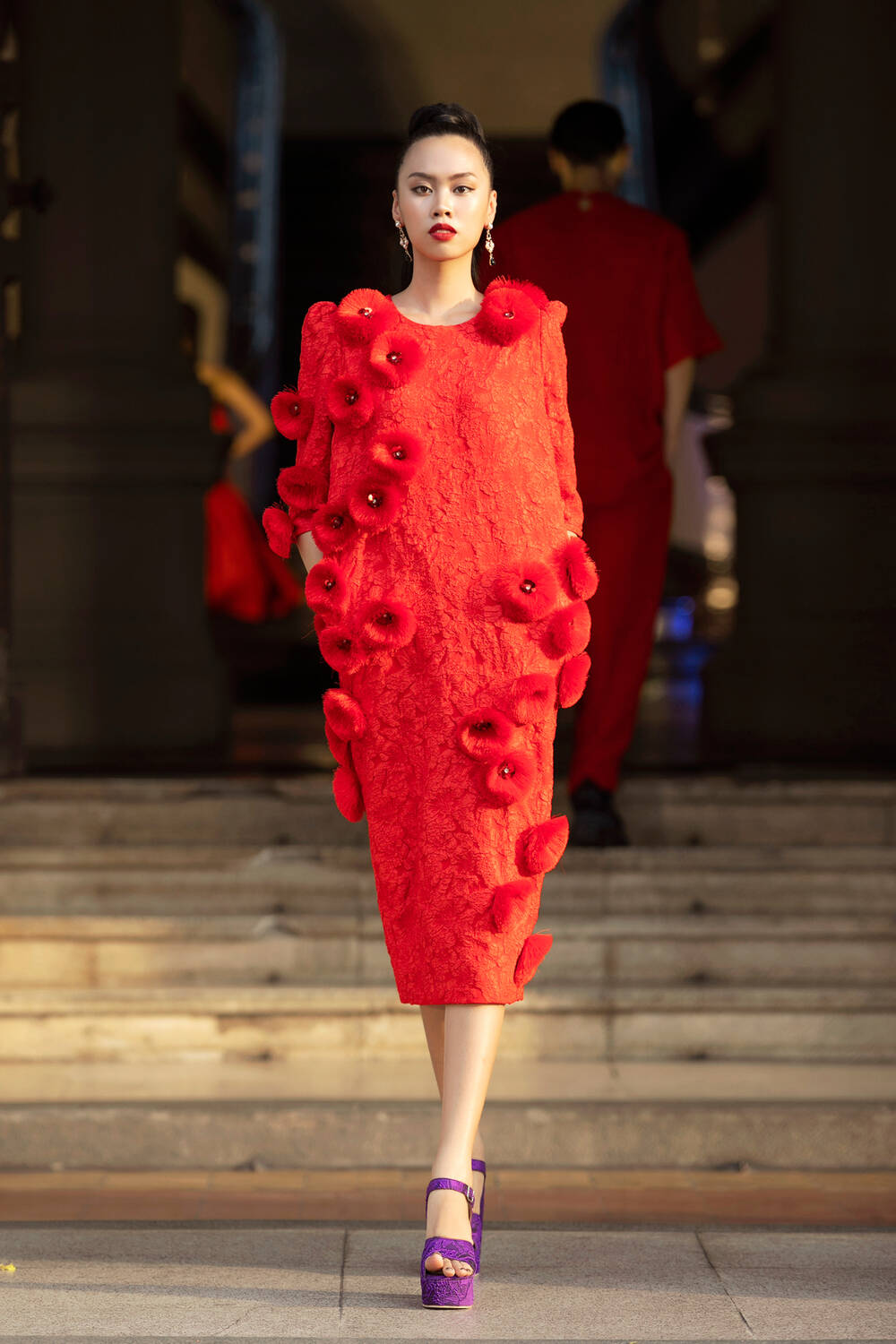 Trong show diễn gồm hai phần, hoa hậu Tiểu Vy đảm nhận mở màn phần hai. Sự xuất hiện của Hoa hậu Tiểu Vy như một đóa hoa mùa xuân, hoa hậu diện thiết kế váy babydoll trẻ trung được đính kết hoa lay ơn vàng với thần thái catwalk chuyên nghiệp.