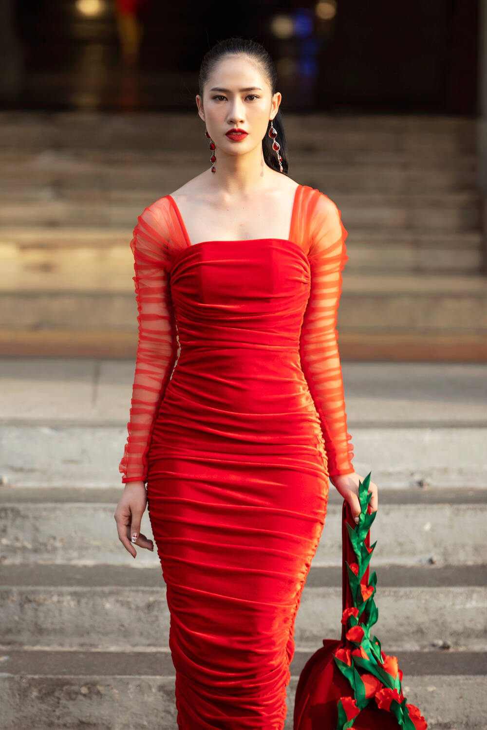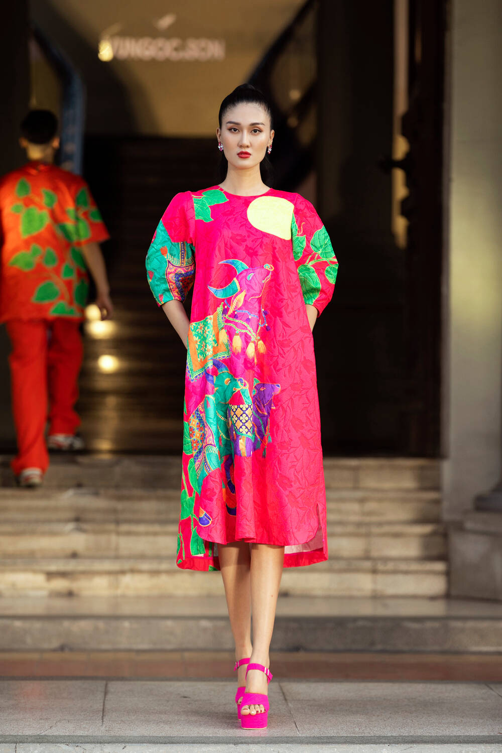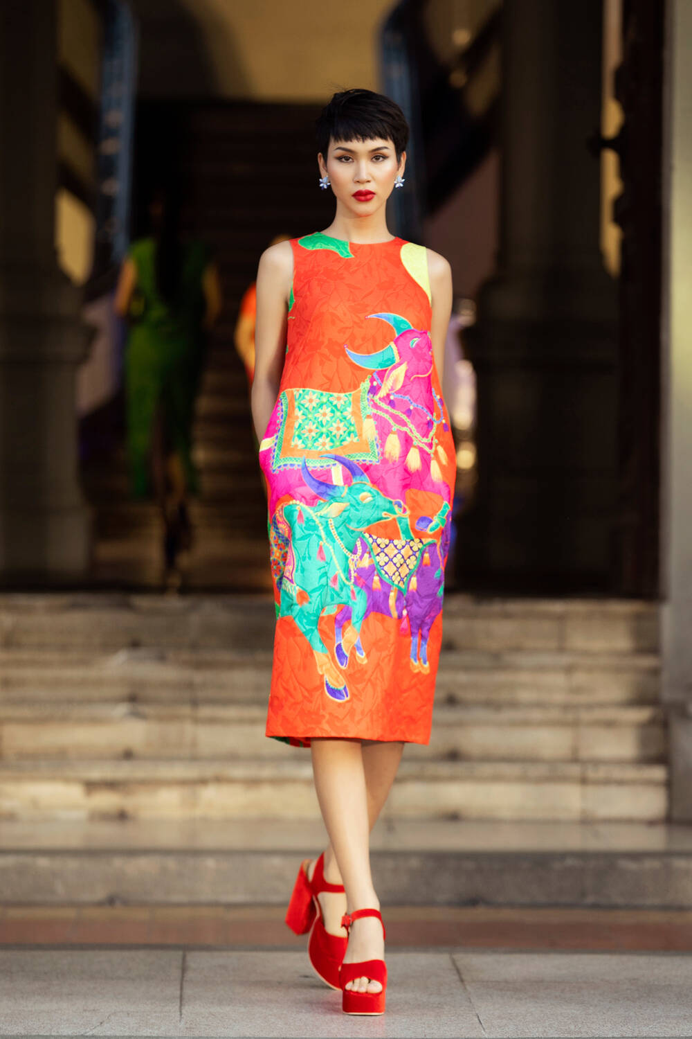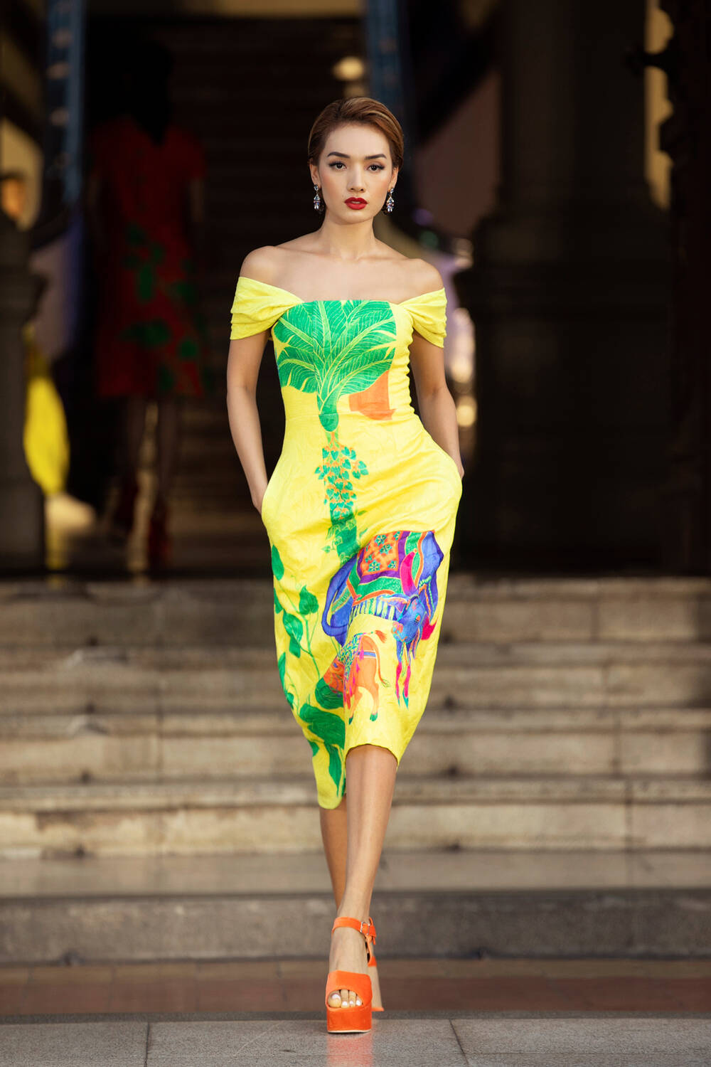 Trong show diễn gồm hai phần, hoa hậu Tiểu Vy đảm nhận mở màn phần hai. Sự xuất hiện của Hoa hậu Tiểu Vy như một đóa hoa mùa xuân, hoa hậu diện thiết kế váy babydoll trẻ trung được đính kết hoa lay ơn vàng với thần thái catwalk chuyên nghiệp.