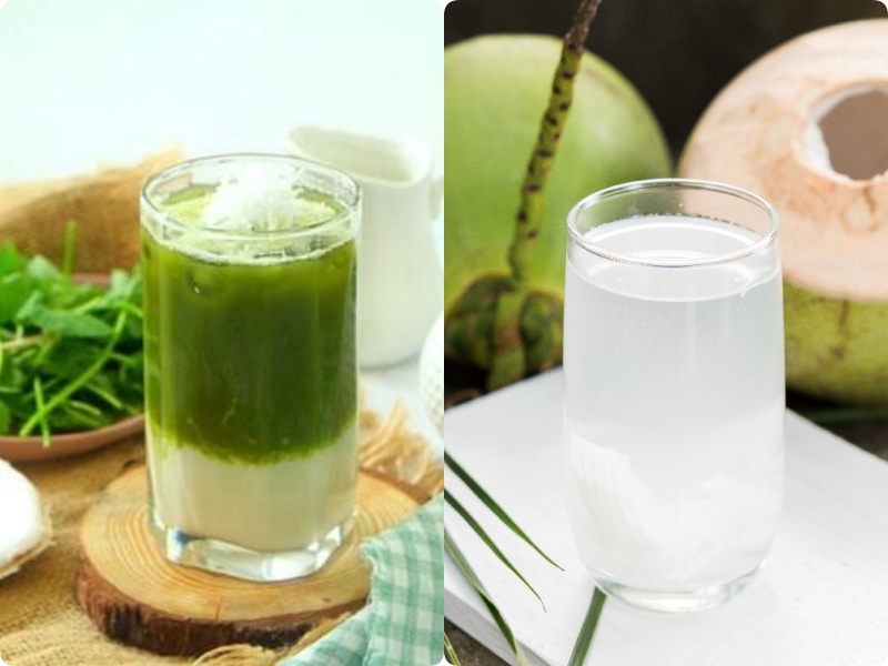 * Nước dừa: Có tác dụng tái tạo da, hỗ trợ chống nhiễm khuẩn vùng da bị mụn, khử độc và có tác dụng làm giảm tỷ lệ mắc mụn. Ngoài ra, uống nước dừa thường xuyên còn giúp bạn làm giảm lượng dầu dư thừa trên da nuôi dưỡng làn da trắng hồng, mịn màng.