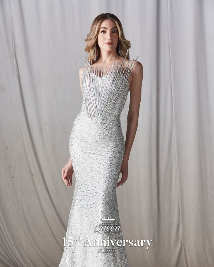 Xuất hiện cùng với 20 thí sinh Hoa hậu Chuyển giới Quốc tế, đại diện Việt Nam – Bùi Đình Hoài Sa diện mẫu thiết kế dạ hội màu trắng với chi tiết cúp ngực giúp cô nàng khoe vòng 1 gợi cảm. Đặc biệt điểm nhấn của bộ trang phục nằm ở phần eo với họa tiết đường may ánh kim uốn lượn và phần tà váy xẻ cao , giúp Hoài Sa tôn lên đôi chân dài quyến rũ.