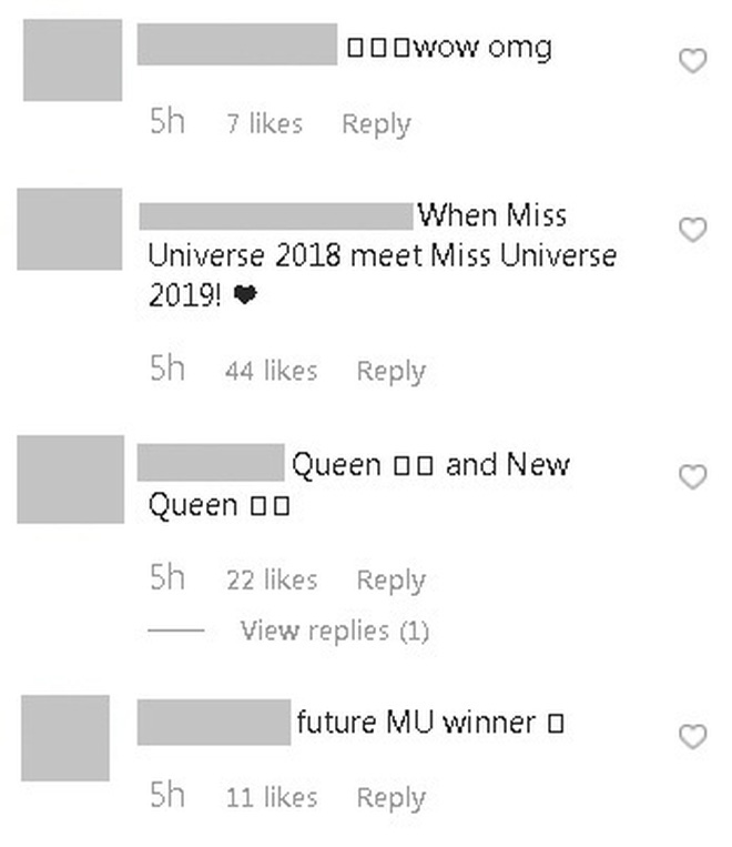 Bức hình Hoàng Thùy đứng cạnh Catriona Gray nhận được vô số lời khen dành cho đại diện nhan sắc đến từ Việt Nam, không ít người còn ví von gọi Hoàng Thùy là người kế nhiệm danh hiệu Hoa hậu Hoàn vũ.