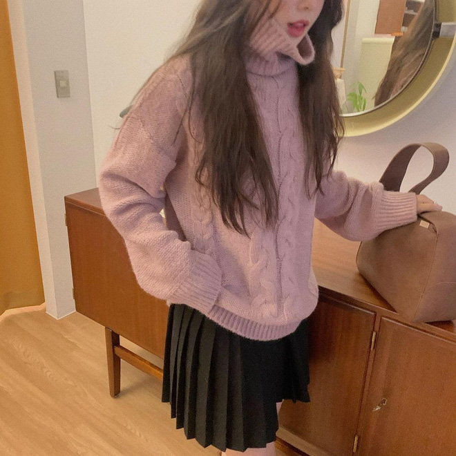 Áo len cổ lọ oversized thả ngoài váy/quần