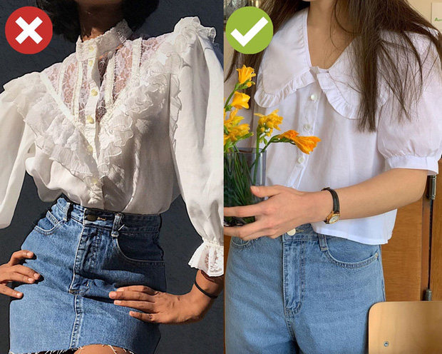 Đồng ý là áo blouse điệu đang rất hot, diện lên xinh tươi và sang chảnh nhưng bạn không thể "nhắm mắt chọn bừa" khi đi shopping item này. Tốt nhất, chị em nên "né" những thiết kế mặc lên quá diêm dúa, mang hơi hướng Hoàng gia vì trông chúng không có tính ứng dụng, thiếu đi nét hiện đại và trẻ trung, dễ khiến vẻ ngoài của bạn trở nên sến không lối thoát. Để đảm bảo vẻ ngoài luôn sang trọng mà vẫn xinh tươi, sành điệu, bạn nên chọn áo blouse tay bồng với những kiểu cổ áo như là: cổ vuông, cổ chữ V, lá sen… và có thiết kế điệu đà vừa phải, không thái quá.