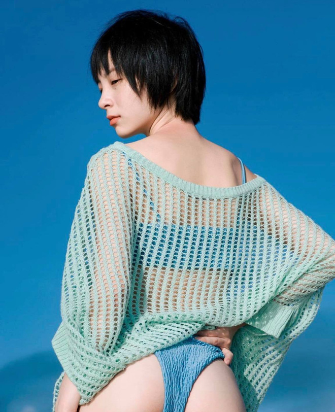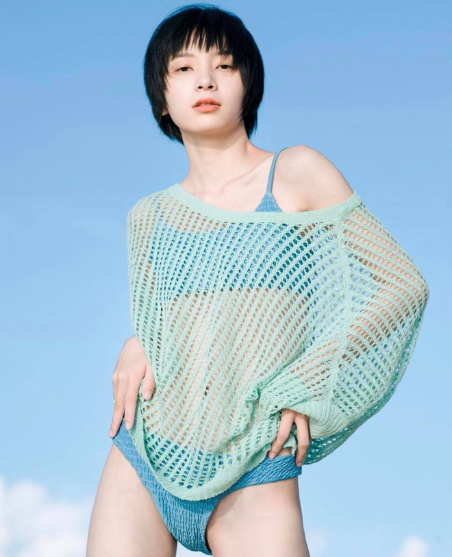 Ròm (sinh năm 2000), mẫu ảnh nức tiếng Instagram giữ nguyên thần thái xịn sò của mình trong bộ bikini màu xanh nước biển. Thêm chiếc áo lưới lấp ló nữa, trông Ròm lại càng thêm phần cuốn hút.