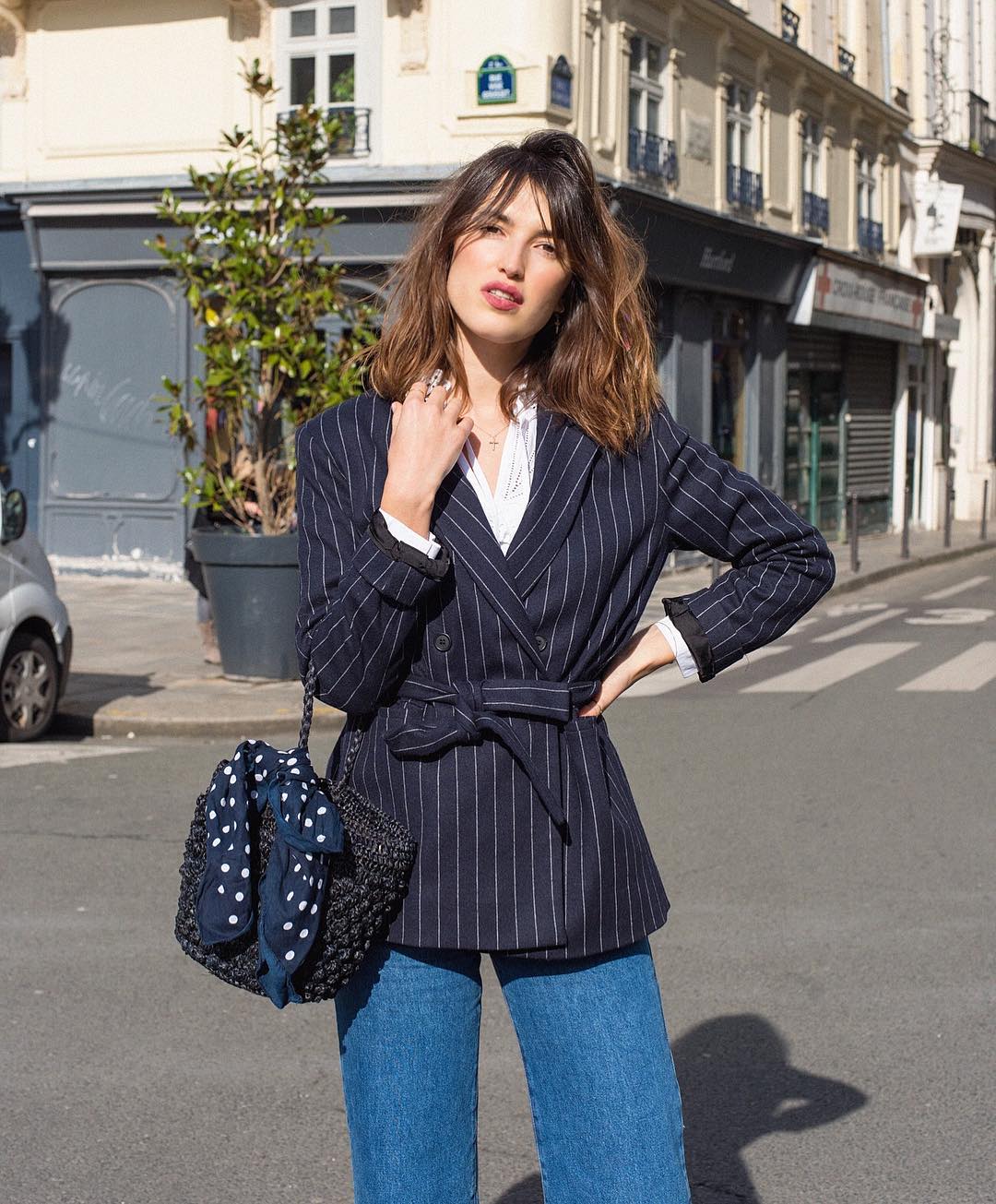 Làm thế nào để có được bộ trang phục trông thật cool ngầu, phong cách, nhưng lại chẳng kém phần nữ tính? Câu hỏi này tưởng khó nhưng với gái Pháp lại vô cùng đơn giản. Họ thường kết hợp váy hai dây vải lụa mềm mại với áo blazer đậm chất menswear, vậy là vẻ ngoài đã trông rất thanh lịch, sang trọng mà vẫn đảm bảo nét duyên dáng, gợi cảm.