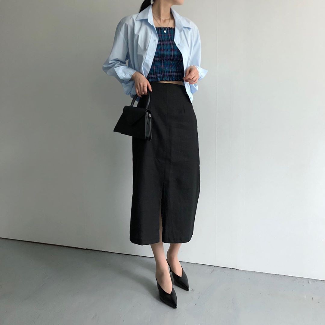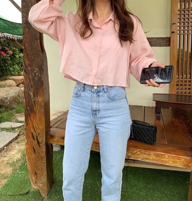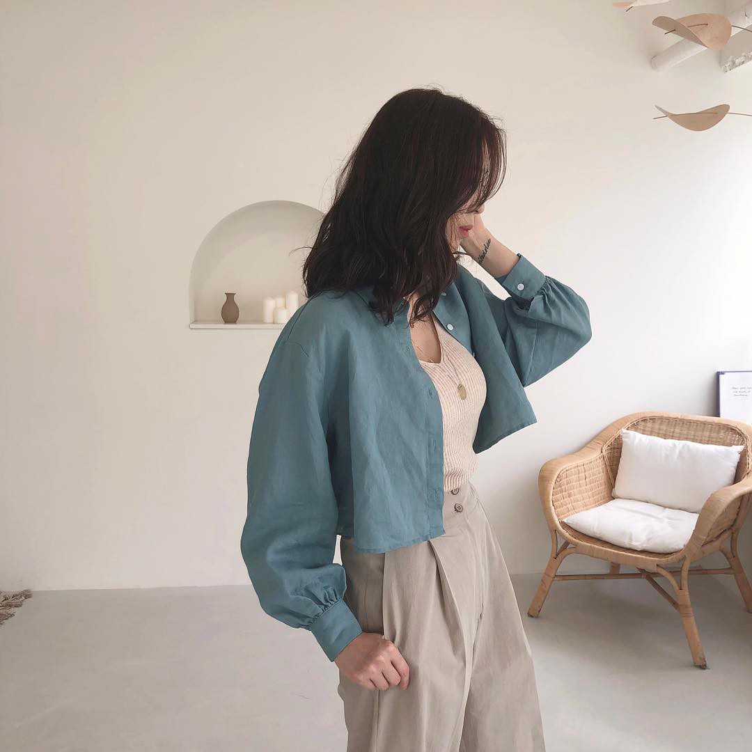 Với những mẫu áo sơ mi lửng dài tay, nhiều cô nàng còn tận dụng luôn để thay cho áo khoác bên ngoài áo croptop. Cách diện này vừa trẻ trung, phóng khoáng lại hợp với những ngày tiết trời hơi se lạnh của mùa thu.