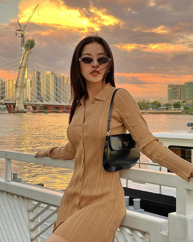 Trái ngược với style sexy của cô chị, em gái Chi Pu khoe dáng thon, ghi điểm bằng phong cách kín đáo, nhẹ nhàng. Cô nàng cũng kết hợp thêm kính mát, túi kẹp nách nên tăng vài level sành điệu.