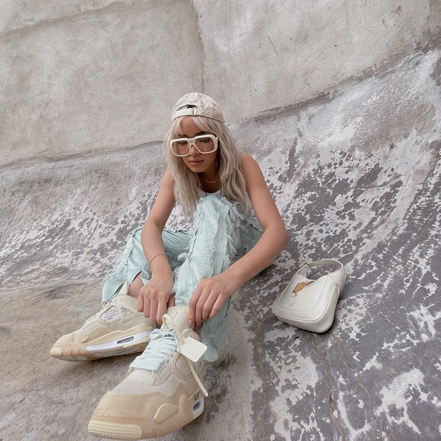 Châu Bùi có set đồ không thể "bụi phủi" hơn. Cây đồ được phối theo tông trắng/be/xanh hay ho, trong đó các item hầm hố đóng vai trò quan trọng giúp cô ghi điểm.