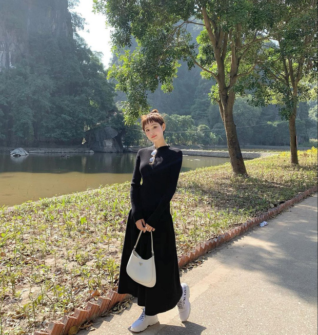 Trái ngược với những mỹ nhân lên đồ "chất chơi", Hiền Hồ chọn cho mình váy dệt kim dài phối sneaker trắng là có diện mạo vô cùng ổn.