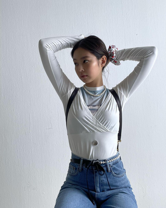 Jennie diện áo thun trắng đẹp từ hè sang thu, dù chỉ toàn mix đồ theo cách đơn giản.