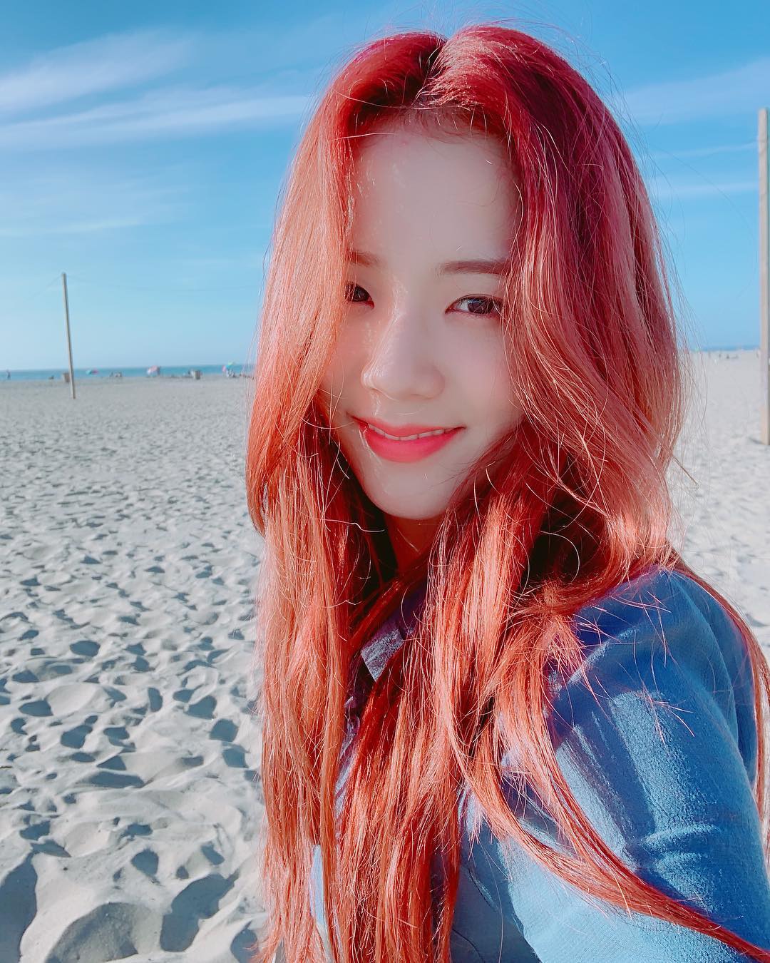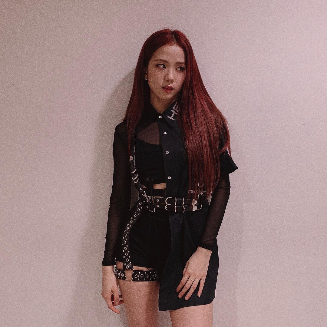 Màu tóc đỏ cam mang đến cho Jisoo vẻ ngoài vô cùng nổi bật. Thực tế, đây là màu nhuộm không dễ để chinh phục vì có thể khiến diện mạo của chủ nhân trông lòe loẹt quá hóa sến. Tuy nhiên, khi áp dụng màu nhuộm đỏ cam, visual của Jisoo trông cực kỳ ấn tượng, sành điệu và không kém phần quyến rũ. Chưa hết, kiểu tóc đỏ cam còn rất hợp với phong cách âm nhạc cá tính của Black Pink, nên việc Jisoo kết thân với màu nhuộm đỏ cam lại càng thêm sáng suốt.