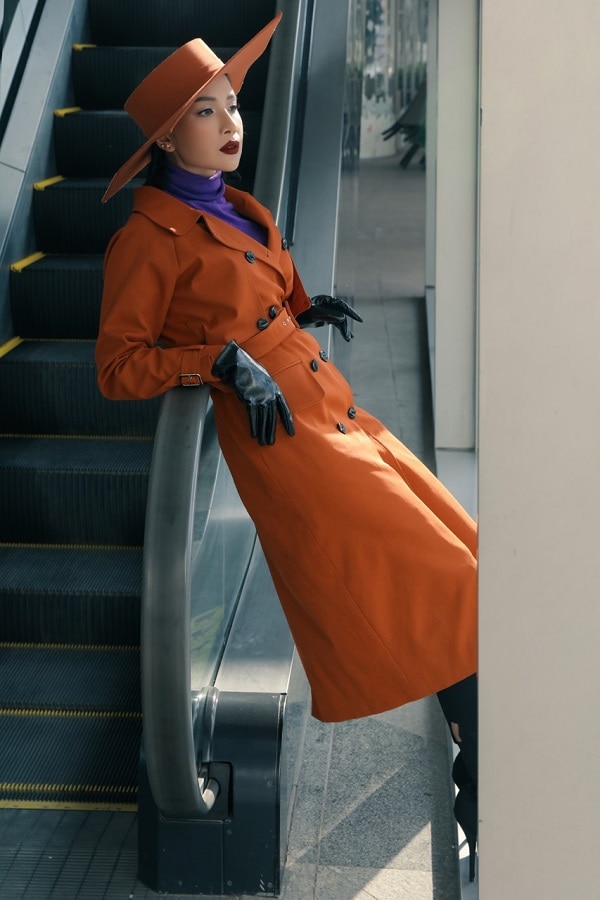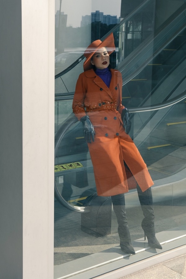Nhân dịp đảm nhận chức vụ mới, Khả Như đã tung ra bộ ảnh thời trang theo phong cách 'nữ tổng tài' vô cùng sang trọng, cá tính với găng tay da đen, áo khoác măng tô dáng dài cùng mũ vành to.