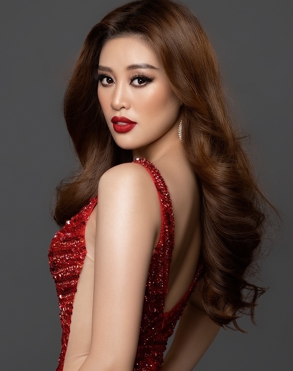 Trong ảnh, Khánh Vân diện thiết kế đầm dạ hội màu đỏ rực rỡ với những đường cut-out táo bạo, khoe triệt để đường cong bốc lửa của mình.