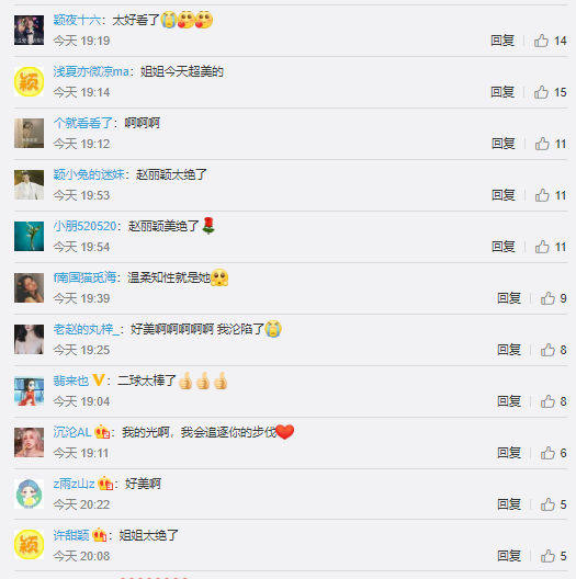 Đáng chú ý nhất vẫn là khoảnh khắc xinh đẹp của Triệu Lệ Dĩnh ở khán đài. Giây phút nữ diễn viên mỉm cười nhẹ nhàng khiến nhiều người phải hết lời khen ngợi. Cộng đồng mạng liên tục tán dương khoảnh khắc xuất thần này: “Quá đẹp. Tôi thích”, “Nó quá đẹp”, “Ánh sáng của tôi, tôi sẽ theo bước của em”, “Dĩnh Dĩnh rất đẹp”, “Triệu Lệ Dĩnh thật kinh khủng”, “Chị hôm nay siêu đẹp”, “Nhẹ nhàng và trí tuệ là cô ấy”, “Tôi chịu thua sự dịu dàng này”.