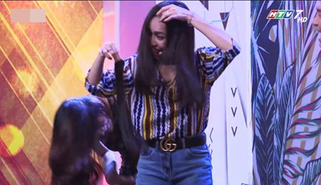 Tuy nhiên, cảnh gây "kinh hãi" nhất là khi mảng tóc sau đầu nữ diễn viên tự tuột ra và chỉ được phát hiện bởi Thuý Ngân. Hoá ra Lan Ngọc sử dụng tóc nối kẹp để làm dày và dài tóc, tạo hiệu ứng mái tóc dài bồng bềnh tự nhiên và hoàn thiện vẻ ngoài thanh lịch trong tà áo dài truyền thống.