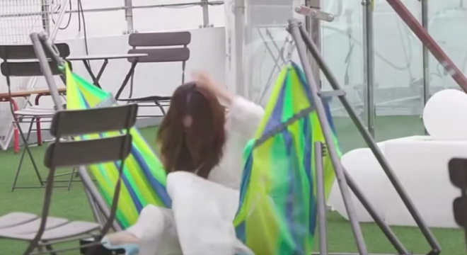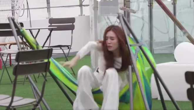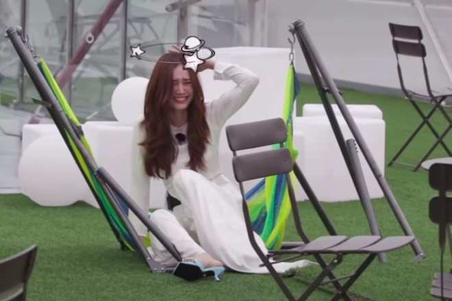 Trong đoạn clip ngắn do ekip của Chạy Đi Chờ Chi vừa chia sẻ mới đây thôi, Lan Ngọc đã "húp trọn" cú ngã đau điếng vì ngồi lên chiếc võng dựng sẵn. Chiếc võng do không được gia cố cẩn thận nên chẳng chịu nổi cân nặng nhẹ bẫng của "Ngọc nữ", khiến cô ngã ngồi và đập đầu ra phía sau.