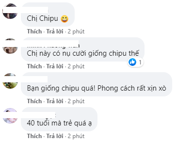 Tuy nhiên, thay vì bàn luận đến phong cách thời trang của cô nàng thì hàng trăm dân mạng đã để lại bình luận nhận xét cô có nhan sắc giống Chi Pu. Bên cạnh việc khen ngợi vẻ ngoài trẻ đẹp hơn so với độ tuổi 40, nhiều người đã gọi cô là 'chị gái Chi Pu'.