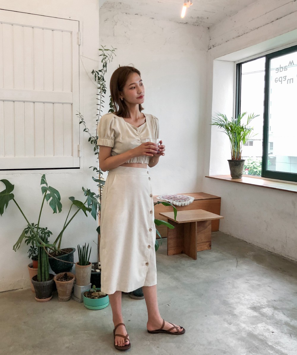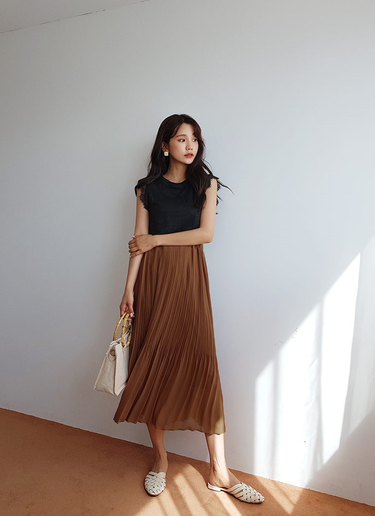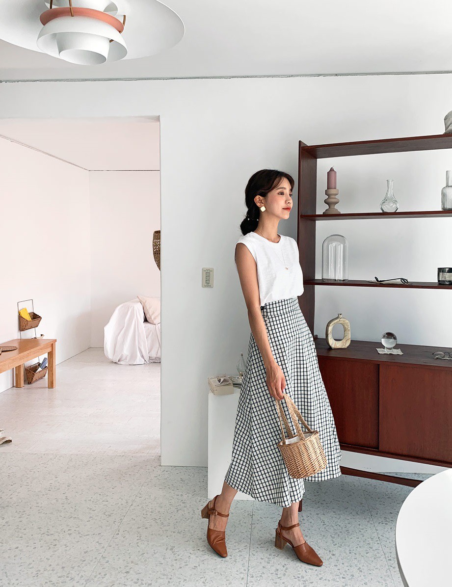 1. Chân váy + sandals đơn giản
