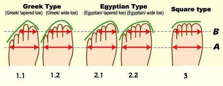 Chiều dài của các ngón chân quyết định trực tiếp kiểu giày và độ cao của gót giày mà bạn sẽ chọn. Ví dụ các ngón chân bạn dài và nhọn thì không thể chọn giày mõm bằng hay mõm tròn mà phải chọn giày mũi nhọn mới tạo cảm giác thoải mái cho đôi chân. Còn nếu các ngón chân đều nhau không quá dài hay nhọn thì lại hợp với kiểu giày mũi vuông, tròn.