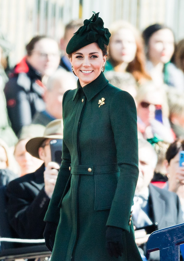 #6. Trong ngày Thánh Patrick năm 2019, cô phối áo khoác màu ngọc lục bảo giá hơn 91 triệu VNĐ của Alexander McQueen với chiếc cài áo cỏ 3 lá vàng ròng nguyên chất.