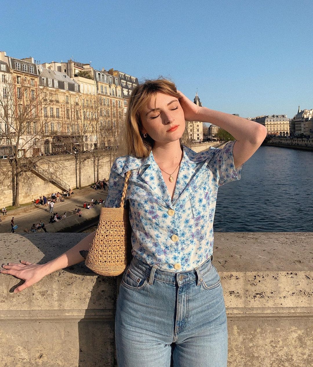 Áo sơ mi cộc tay hợp mix với rất nhiều items, chẳng hạn như chân váy hay quần ống rộng. Tuy nhiên, nếu hỏi về "nửa kia" hoàn hảo nhất của áo sơ mi cộc tay thì chỉ có thể là quần jeans. Combo áo sơ mi cộc tay + quần jeans cũng là công thức "ruột" của gái Pháp. Sự kết hợp này giúp họ có được outfit siêu trẻ trung, có chút cổ điển, lãng mạn mà đầy thanh lịch. Khi diện combo này, gái Pháp không bao giờ quên sơ vin để đảm bảo sự chỉn chu, hiệu quả tôn dáng cho set đồ, đồng thời nâng cấp vẻ sành điệu.