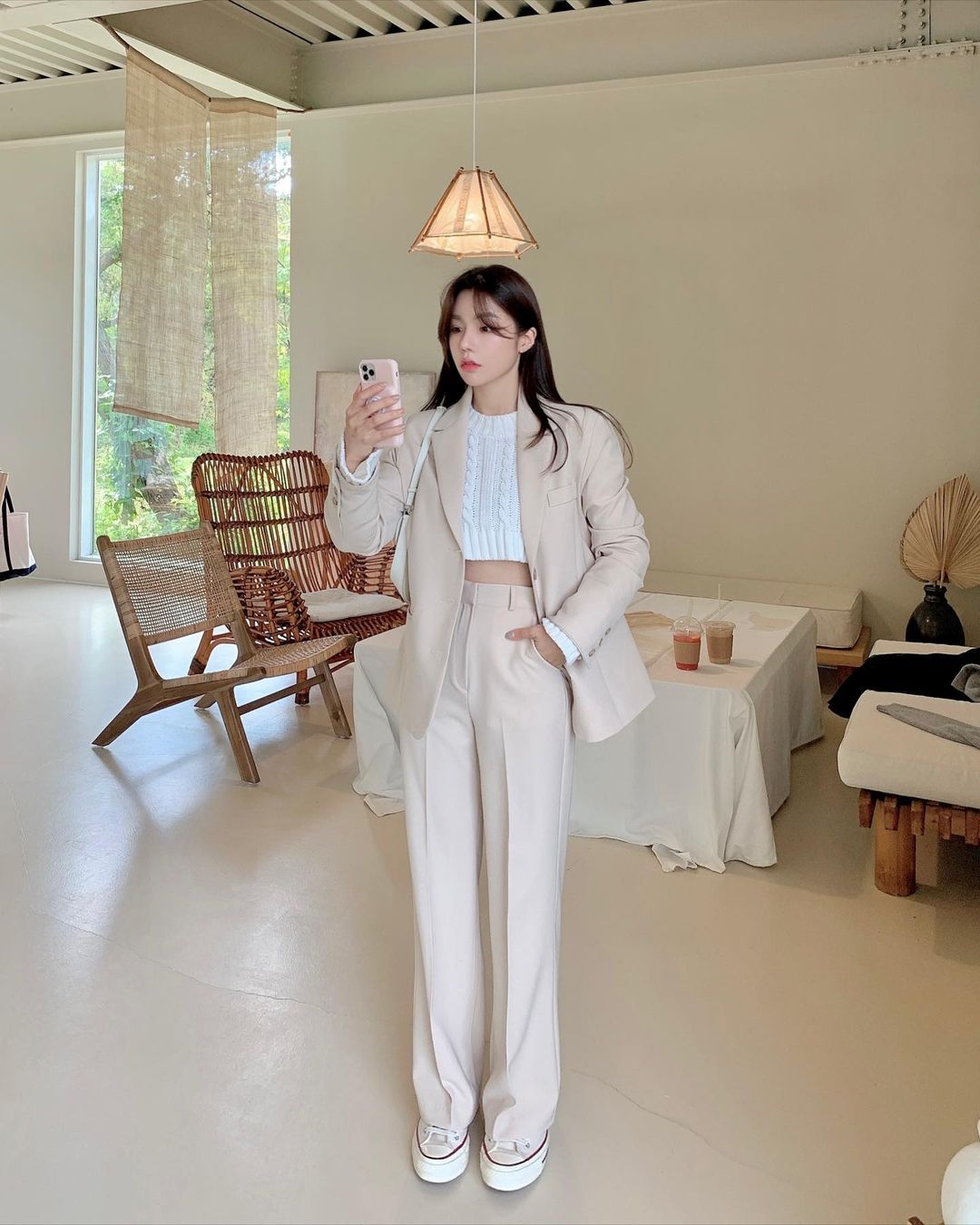 Khi diện bộ suit, các quý cô sành điệu có những cách lên đồ tương đối đa dạng. Ngoài việc layer bên trong những mẫu áo basic như sơ mi, áo thun, họ còn có thể kết hợp với áo crop top để tăng vẻ sexy, phá cách cho bộ đồ. Ngoài ra, cách chọn giày dép cũng là yếu tố mang đến sự khác biệt cho style khi bạn diện bộ suit. Cụ thể, nếu đi giày sneaker, vẻ ngoài sẽ rất trẻ trung, cool ngầu. Còn trong trường hợp, nàng công sở muốn hoàn thiện vẻ ngoài 100% thanh lịch và chuyên nghiệp, giày cao gót mũi nhọn, loafer hoặc Oxford sẽ là lựa chọn hoàn hảo.