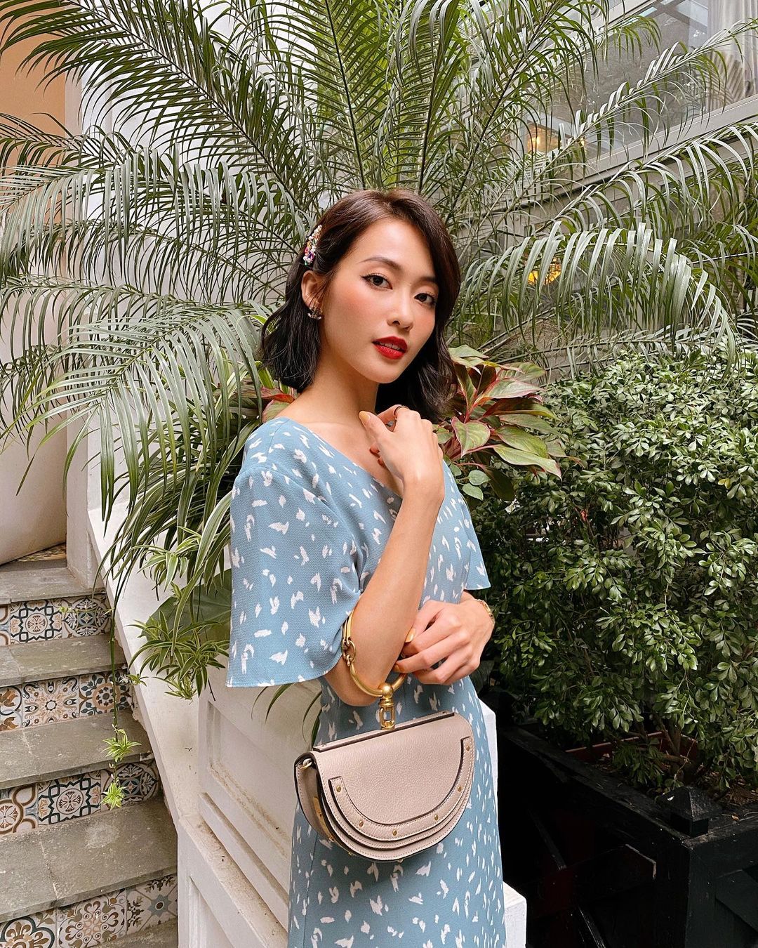 Thay vì uốn xoăn xù hay uốn sóng to kiểu cổ điển, mái tóc ngắn của Khả Ngân chỉ được làm xoăn gợn nhẹ, cắt đuôi bằng. Đây là một "nước đi" vô cùng thông minh vì những lọn tóc sóng nhẹ vẫn sẽ đảm bảo vẻ nữ tính, hack độ dày dặn, bồng bềnh cho mái tóc nhưng hoàn toàn không khiến vẻ ngoài của nữ diễn viên bị "già" đi, hay trở nên lỗi mốt, "quê kiểng". Do đó, khi nghĩ đến việc uốn xoăn cho mái tóc, chị em chỉ nên chọn phiên bản uốn sóng nhẹ nhàng, diện mạo sẽ trở nên xinh tươi, trẻ trung.