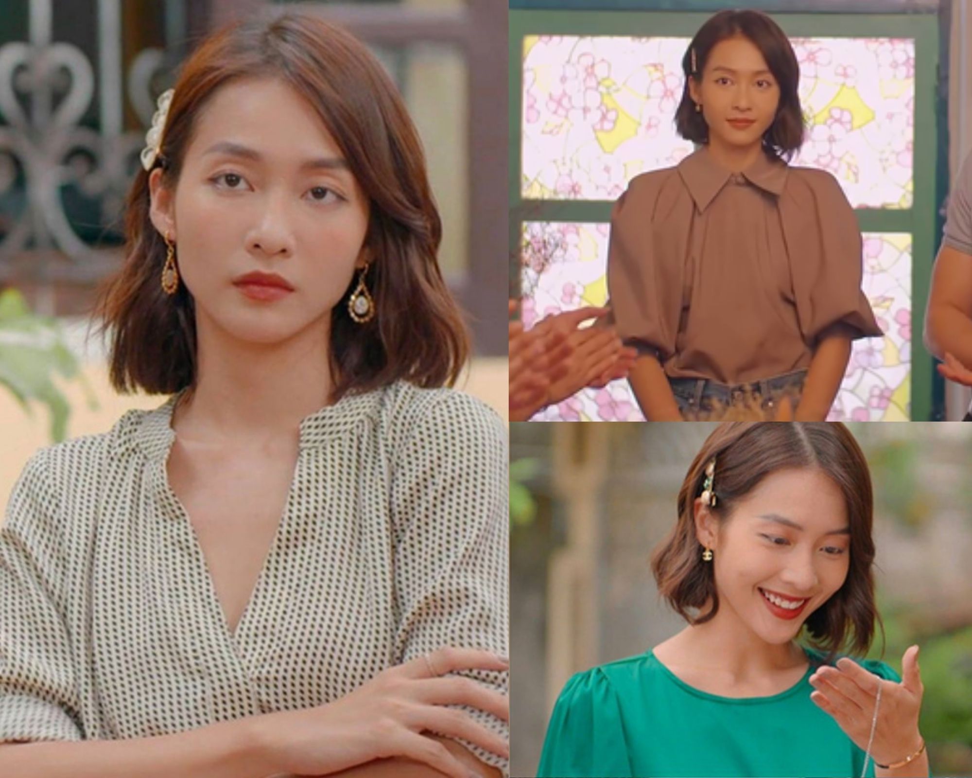 Tóc ngắn xoăn, nhuộm nâu vốn rất xinh tươi, sang chảnh nhưng nếu không có bất cứ biến tấu nào mới mẻ hơn, diện mạo sẽ trở nên nhàm chán. Và không để hình ảnh của nhân vật Tuệ Nhi trở nên "một màu", Khả Ngân trong "11 Tháng 5 Ngày" đã biến hóa với rất nhiều kiểu kẹp tóc khác nhau. Món phụ kiện này đã giúp tạo điểm nhấn thú vị cho mái tóc của Khả Ngân, và tăng thêm phần sang chảnh, đúng chất tiểu thư cho nhân vật mà nữ diễn viên đang đảm nhận. Bên cạnh kẹp tóc, Khả Ngân còn đổi muôn kiểu khuyên tai, phong cách của nhân vật lại càng được cộng điểm.