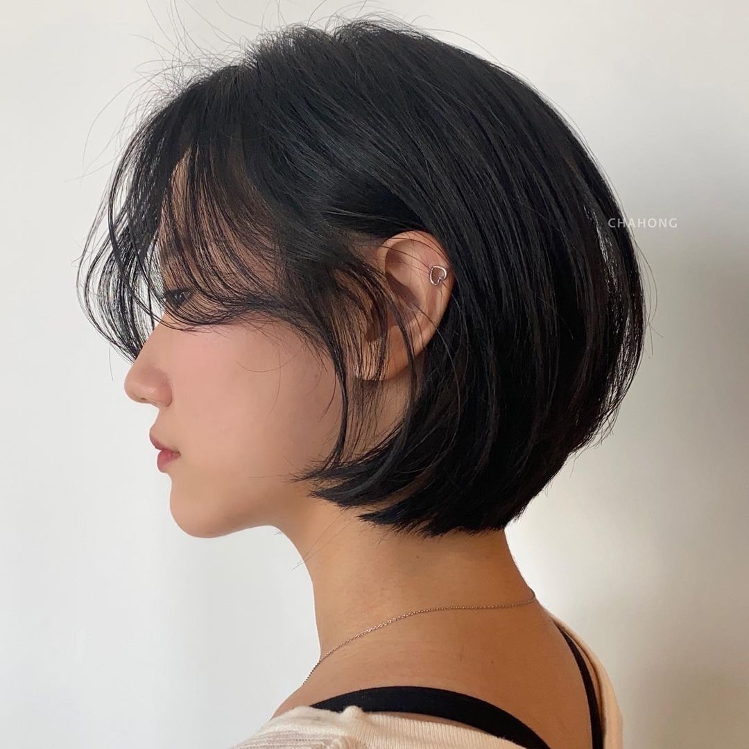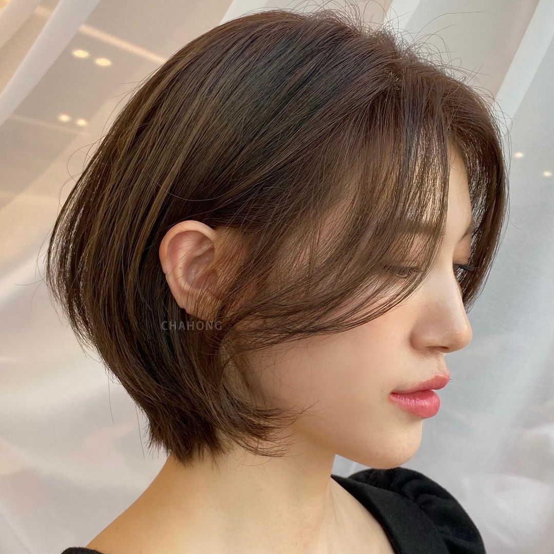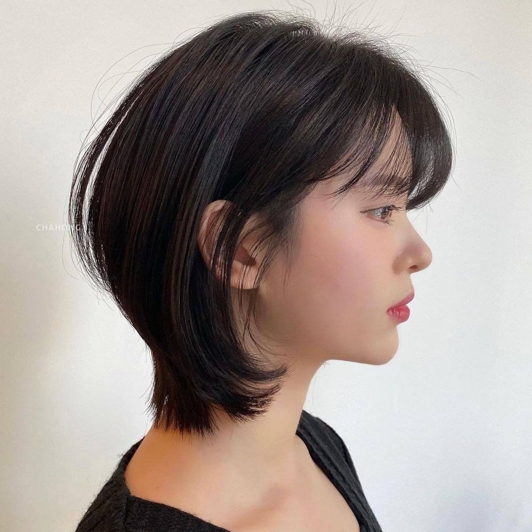 Kiểu tóc ngắn tỉa layer phiên bản hot nhất tại các salon Hàn Quốc thường không bỏ qua phần tóc mái. Cụ thể, các quý cô xứ Hàn có thể để mái lưa thưa, mái rèm cửa, hay mái chéo lơ thơ vài sợi đều được và chính chi tiết này sẽ càng làm gọn mặt tốt hơn nhưng vẫn đảm bảo độ sáng sủa, nhẹ mát. Chưa hết, tóc ngắn tỉa layer, để mái cũng ghi điểm ở sự trẻ trung, ngọt ngào và tạo sự mềm mại cho gương mặt chứ không hề bị cứng nhắc chút nào.