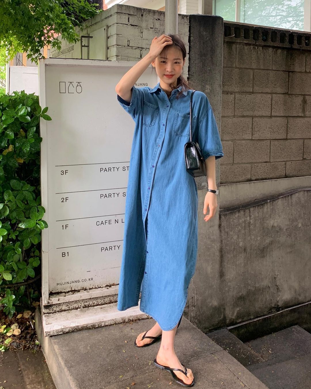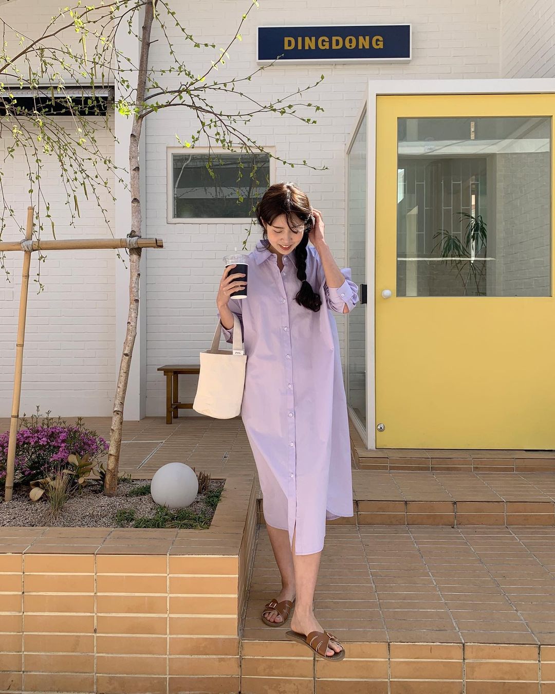 Váy sơ mi nói chung đều có phom dáng suông, diện lên cực kỳ thoải mái, giúp giải nhiệt tốt trong những ngày hè nóng nực. Thú vị không kém, độ rộng rãi vừa phải của váy sơ mi còn giúp giấu nhẹm đi mọi nhược điểm vóc dáng, giúp vẻ ngoài của chị em thêm phần đẹp xinh, nuột nà.