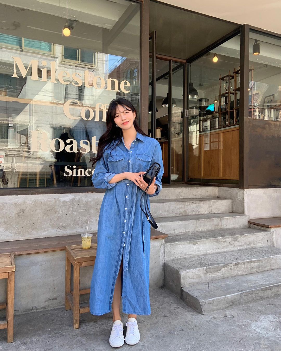 Thế nhưng cái hay của váy sơ mi không chỉ dừng lại ở đó. Kiểu dáng của váy sơ mi luôn toát lên vẻ phóng khoáng, năng động và nhờ vậy, diện mạo của chị em sẽ được trẻ hóa hiệu nghiệm, toát lên sự ngọt ngào, tươi sáng nhưng không hề lo bị "cưa sừng làm nghé". Vừa có được sự thanh lịch, lại vừa trẻ trung vô đối nên rõ ràng, váy sơ mi còn rất hợp để chị em diện đi chơi cuối tuần hay hẹn hò buổi tối nữa.