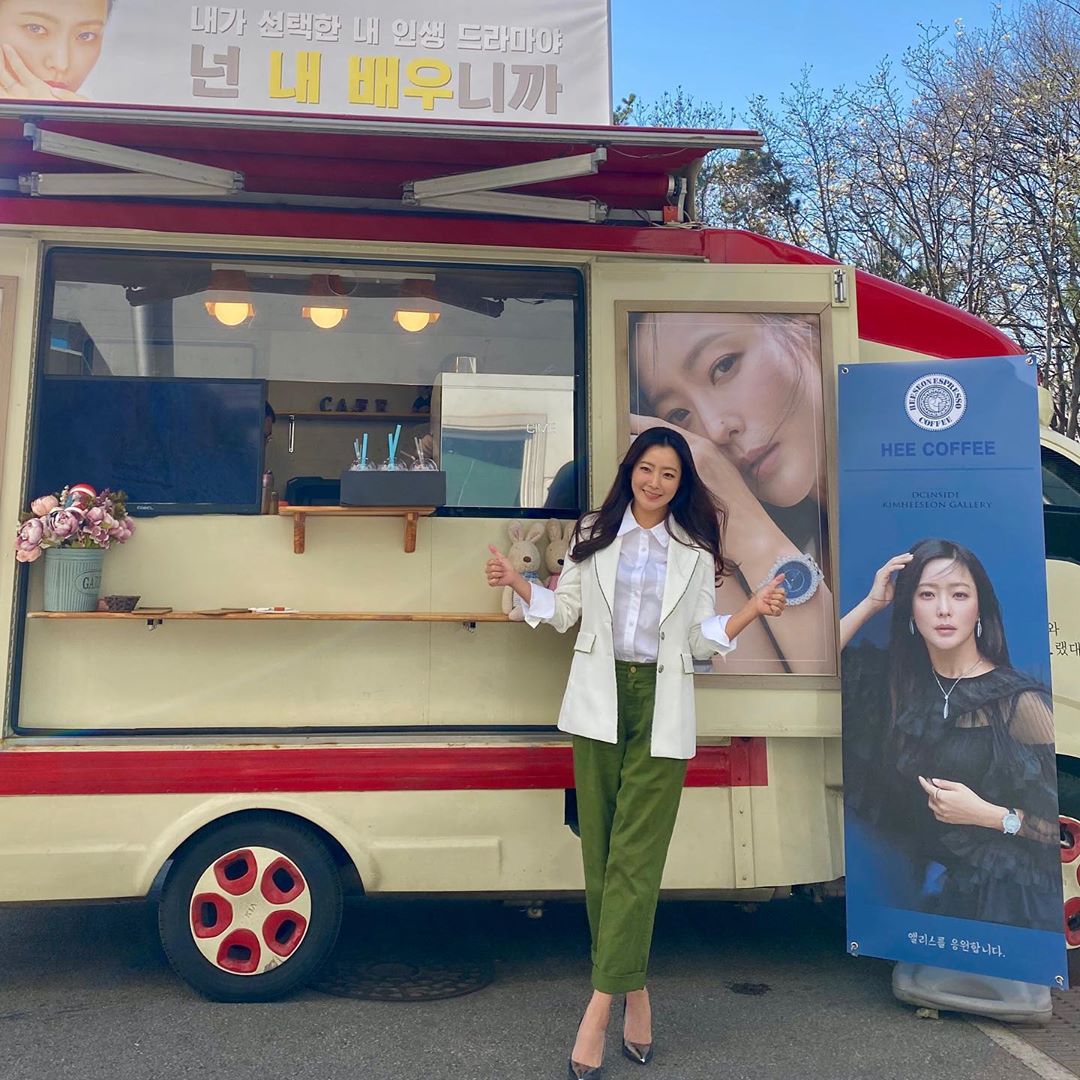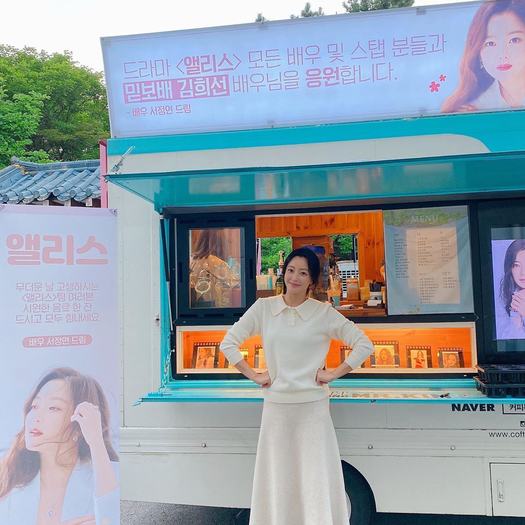 Ở tuổi 43, nhưng Kim Hee Sun không hề bó mình vào những thiết kế đứng tuổi, cô vẫn diện chân váy xòe, blazer hay áo cổ peter pan rất trẻ trung.