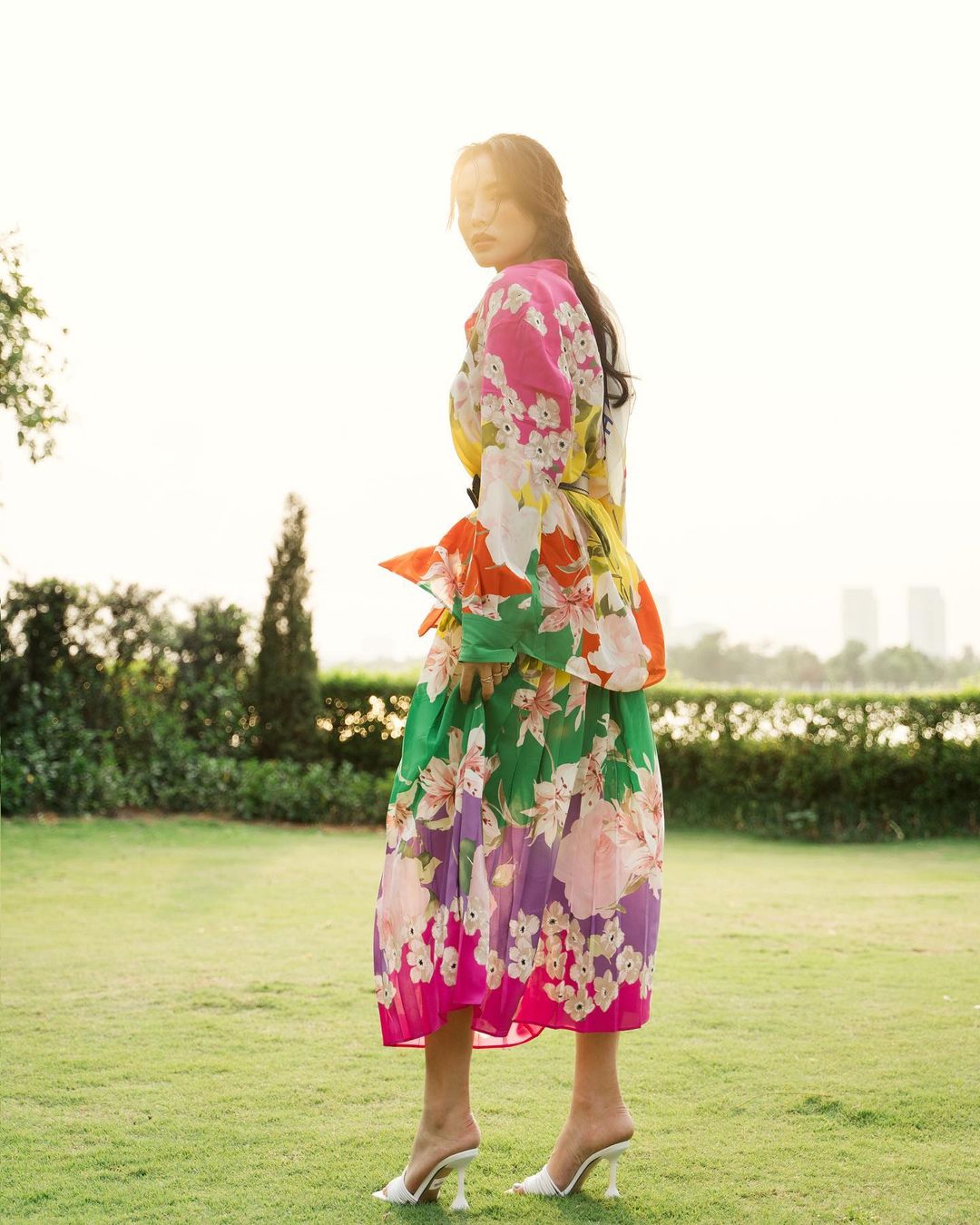 Sandal quai trong chính là xác là kiểu giày "bất bại" trong khoản hack dáng. Kỳ Duyên đã khéo chọn một đôi sandal cao gót nên vóc dáng cao ráo của nàng hậu càng được tôn lên triệt để. Sandal quai trong dễ mix đồ, chị em có thể nhấn nhá kiểu giày này cho mọi set đồ hè để ghi điểm sành điệu, phóng khoáng.