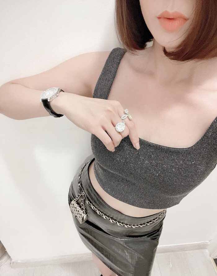 Ví dụ như thường xuất hiện với những bộ cánh bảnh bao, phụ kiện hàng hiệu đắt tiền trên người và mới đây nhất là bộ ảnh với nhẫn kim cương đeo đầy mười ngón tay.