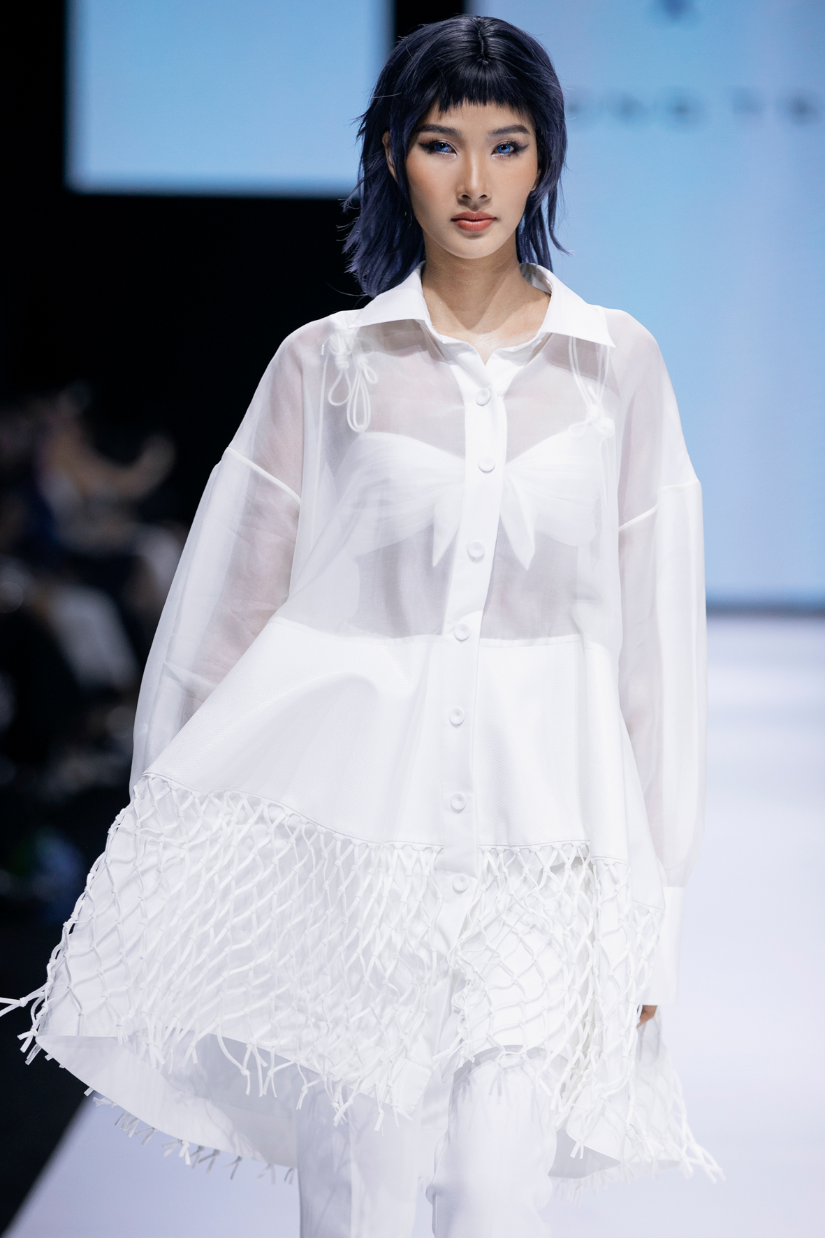 Với những thiết kế mang phong cách Op-art (Nghệ thuật thị giác) đẳng cấp, Nhà thiết kế Nguyễn Công Trí - “anh cả” của làng thiết kế thời trang Việt Nam đã khiến cả khán đài phải choáng ngợp bởi sự công phu trong Bộ sưu tập mở màn tại sự kiện thời trang được mong chờ này.