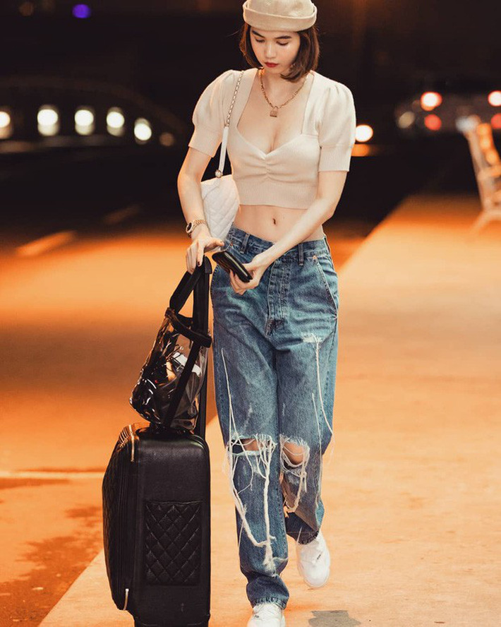 Trong loạt hình street style mới nhất chụp tại sân bay, Ngọc Trinh đã suýt thành công với phong cách chất chơi. Nói "suýt" là bởi mọi thứ đã bị "phá game" vì một món phụ kiện chẳng hề liên quan.