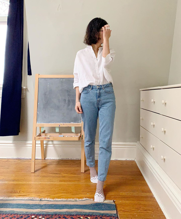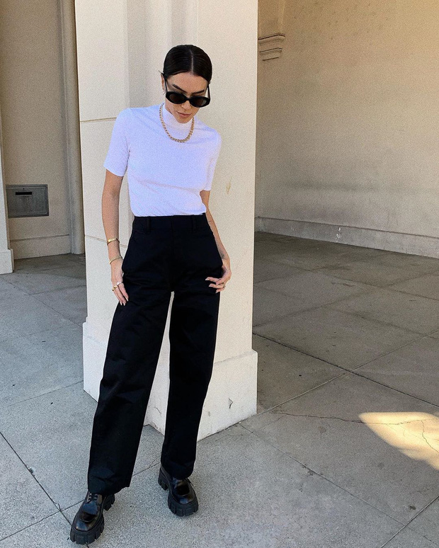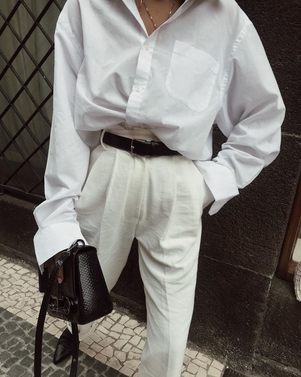 Đây luôn là item kinh điển mà chắc chắn nàng nào cũng có trong tủ đồ, bạn có thể chọn áo phông trắng hay áo sơ mi, áo blouse cách điệu tùy vào sở thích. Tuy nhiên xin hãy nhớ áo trắng rất dễ bẩn và khó làm sạch, nếu chiếc áo của bạn đã có dấu hiệu của những vết ố, chuyển màu thì bạn nên thanh lý ngay và luôn. Ngoài ra, khi chọn áo trắng bạn cũng nên chú ý đến độ dày mỏng của vải, tránh chọn chất vải quá mỏng manh sẽ dễ khiến hình ảnh của bạn kém duyên đi vài phần.