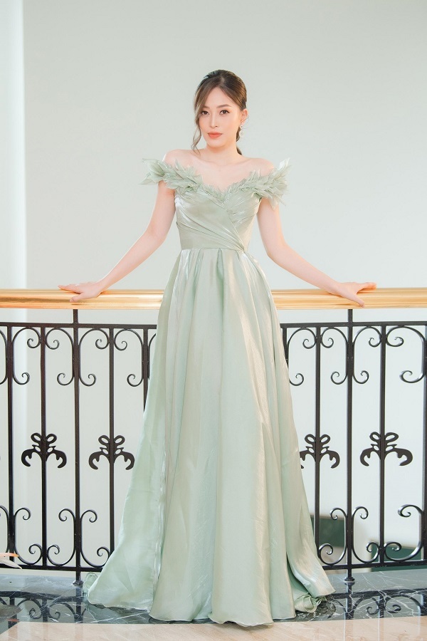 Tại sự kiện, Đỗ Mỹ Linh diện váy gam màu ánh kim của nhà thiết kế Nguyễn Minh Tuấn. Chi tiết cắt xẻ giúp cô khoe vai trần cùng vẻ đẹp ngày càng trưởng thành, quyến rũ.