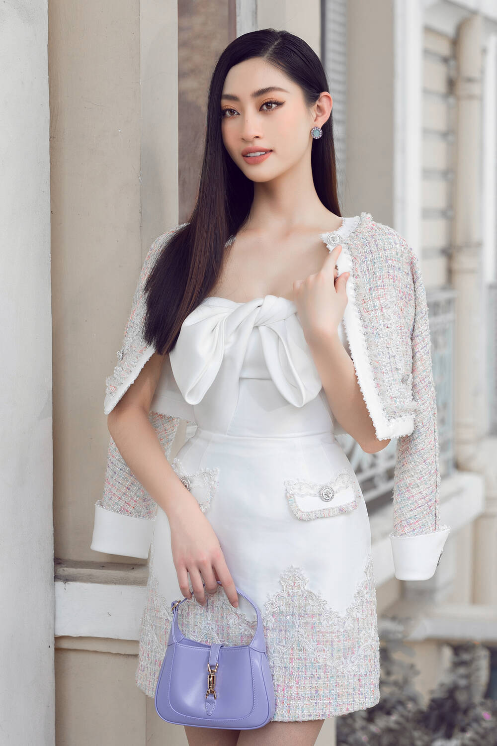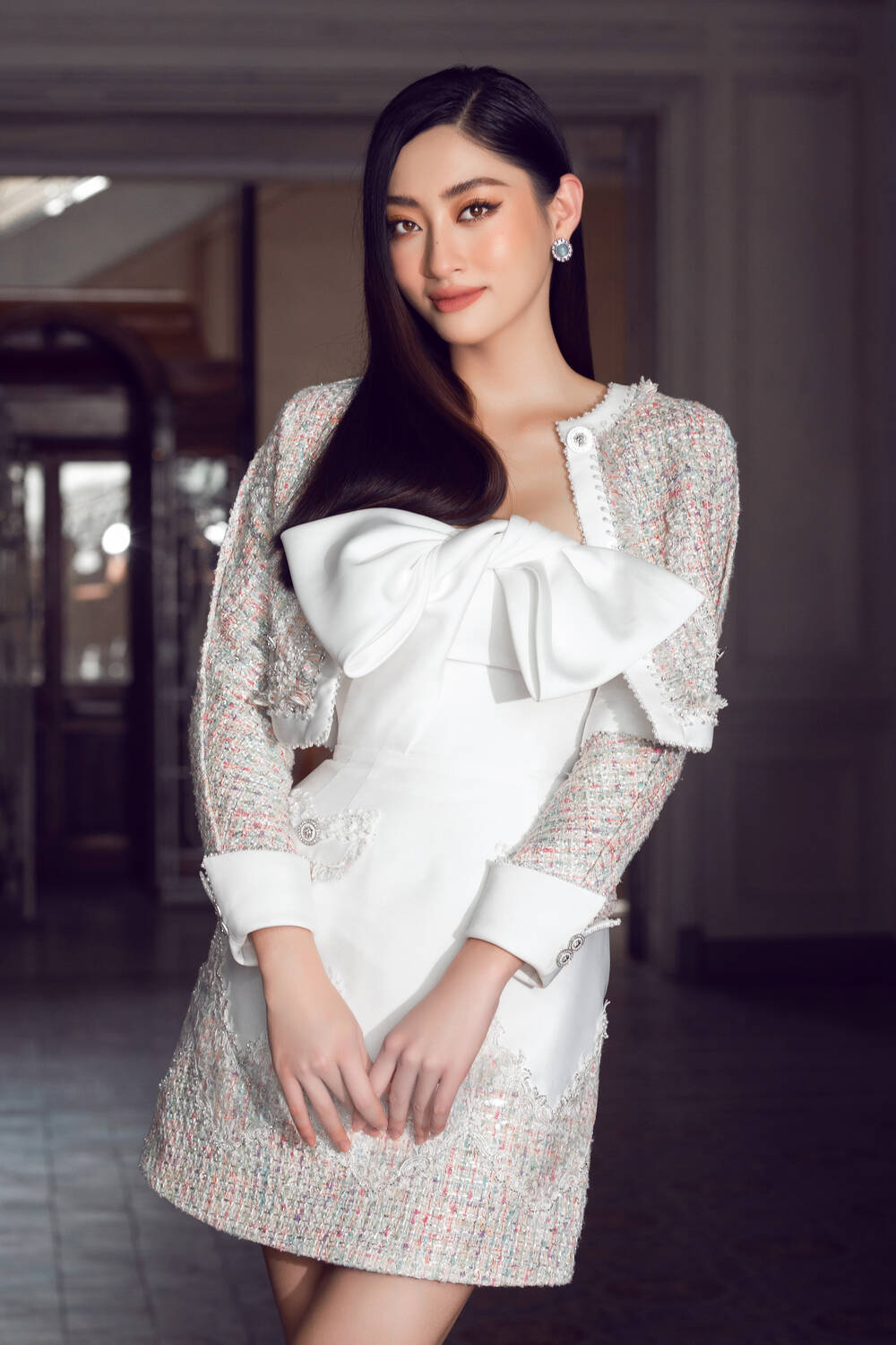 Kết hợp với NTK Đỗ Long mới đây, Lương Thùy Linh đem đến bộ ảnh ấn tượng khi khoác lên mình những thiết kế tweed cổ điển, thanh nhã, quyền lực trong chiếc váy đỏ sang trọng hay trẻ trung, cá tính với các mẫu váy ngắn nổi bật.