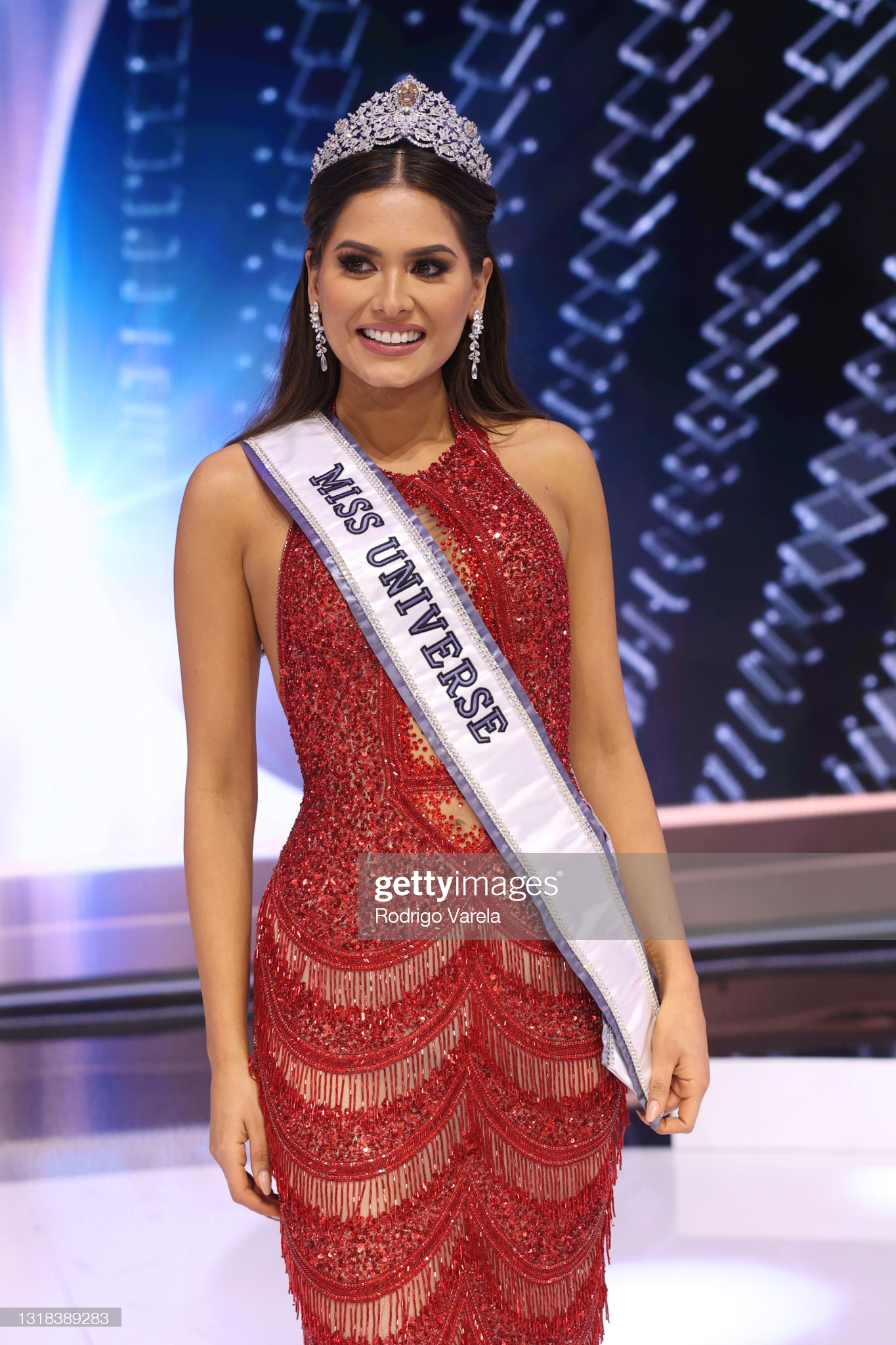 Như vậy là Andrea Meza – đại diện đến từ Mexico đã chính thức dành ngôi vị cao nhất tại cuộc thi Miss Universe 2020. Trong top 5, Andrea Meza nổi bật với mẫu váy màu đỏ đính pha lê lấp lánh, thiết kế tua rua uyển chuyển theo từng bước đi.