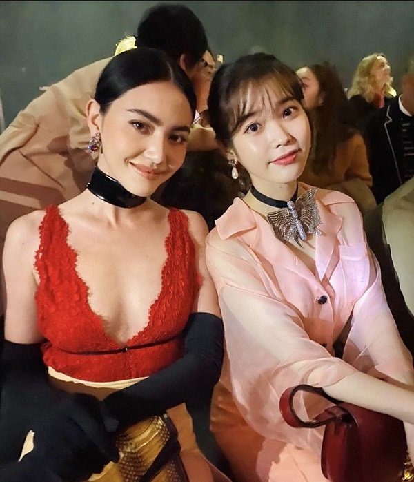 Mai Davika và IU là hai mỹ nhân châu Á nổi bật nhất trong dàn khách mời tại show Gucci diễn ra tại Milan fashion week vừa qua. Trong khi Mai Davika thu hút mọi ánh mắt nhờ diện bộ cảnh cổ xẻ sâu khoe vòng 1 nóng bỏng thì IU ghi điểm với phong cách nhẹ nhàng, ngọt ngào như thường thấy.