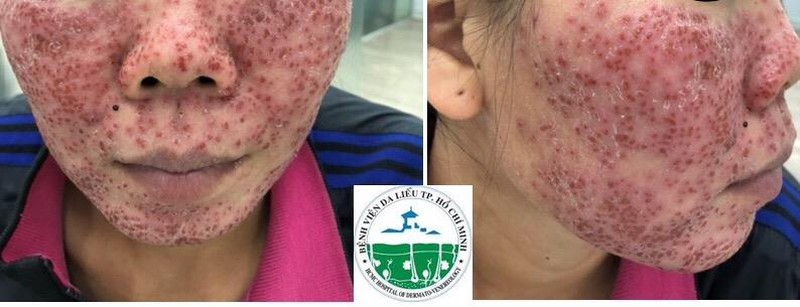 Tương tự chị T., mặc cảm với khuôn mặt nhiều mụn, chị Lê Thị Mỹ H. đã tự lột da mặt bằng thuốc rượu đặt mua trên mạng. Ngay sau khi lột 30 phút, da bắt đầu đỏ và đau rát khó chịu. Ngày hôm sau, toàn bộ da mặt bong tróc và đóng mài khiến chị H. hốt hoảng. Đây là hai trong số rất nhiều bệnh nhân sau khi lột da đã phải đến BV Da liễu “cầu cứu” các bác sĩ.
