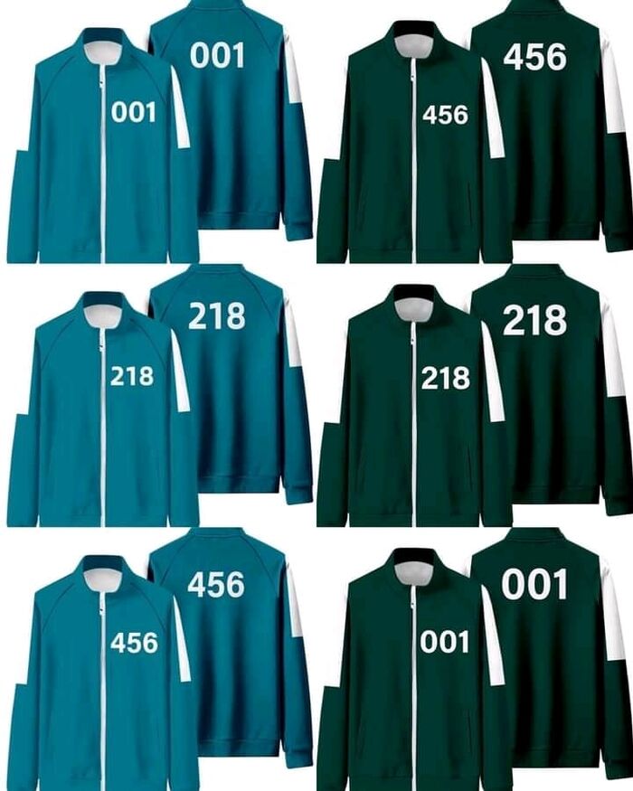 Nói về đặc điểm của bộ đồng phục dành cho người chơi trong Squid Game, nhìn qua khá giống với bộ đồng phục thể dục thể thao với màu xanh sẫm. Phần áo dài tay có đường kẻ trắng ở cánh tay, phần khóa ở giữa. Bên n.gực trái và phía sau lưng có đánh số tương ứng vơí số thứ tự của từng người chơi, cũng có thể được xem là đặc điểm nhận dạng từng nhân vật. Chiếc quần cùng màu có thiết kế giống quần jogger, trông khá thoải mái và dễ di chuyển.