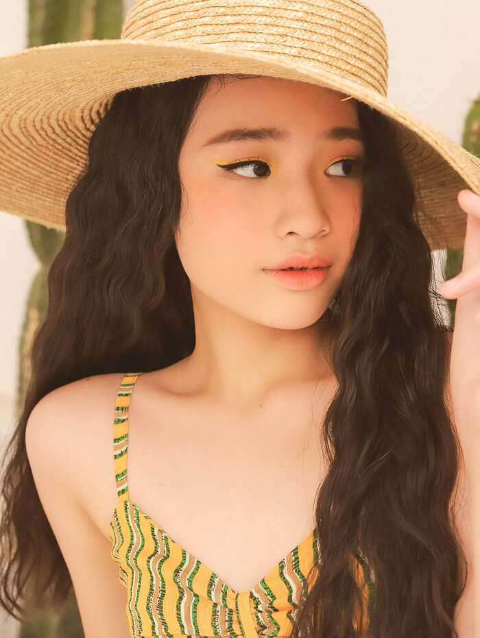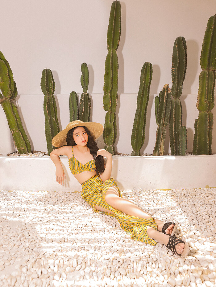 12/06/2020 21:03Mẫu nhí 11 tuổi gợi ý set đồ đi biển sành điệu với sắc vàng rực rỡ