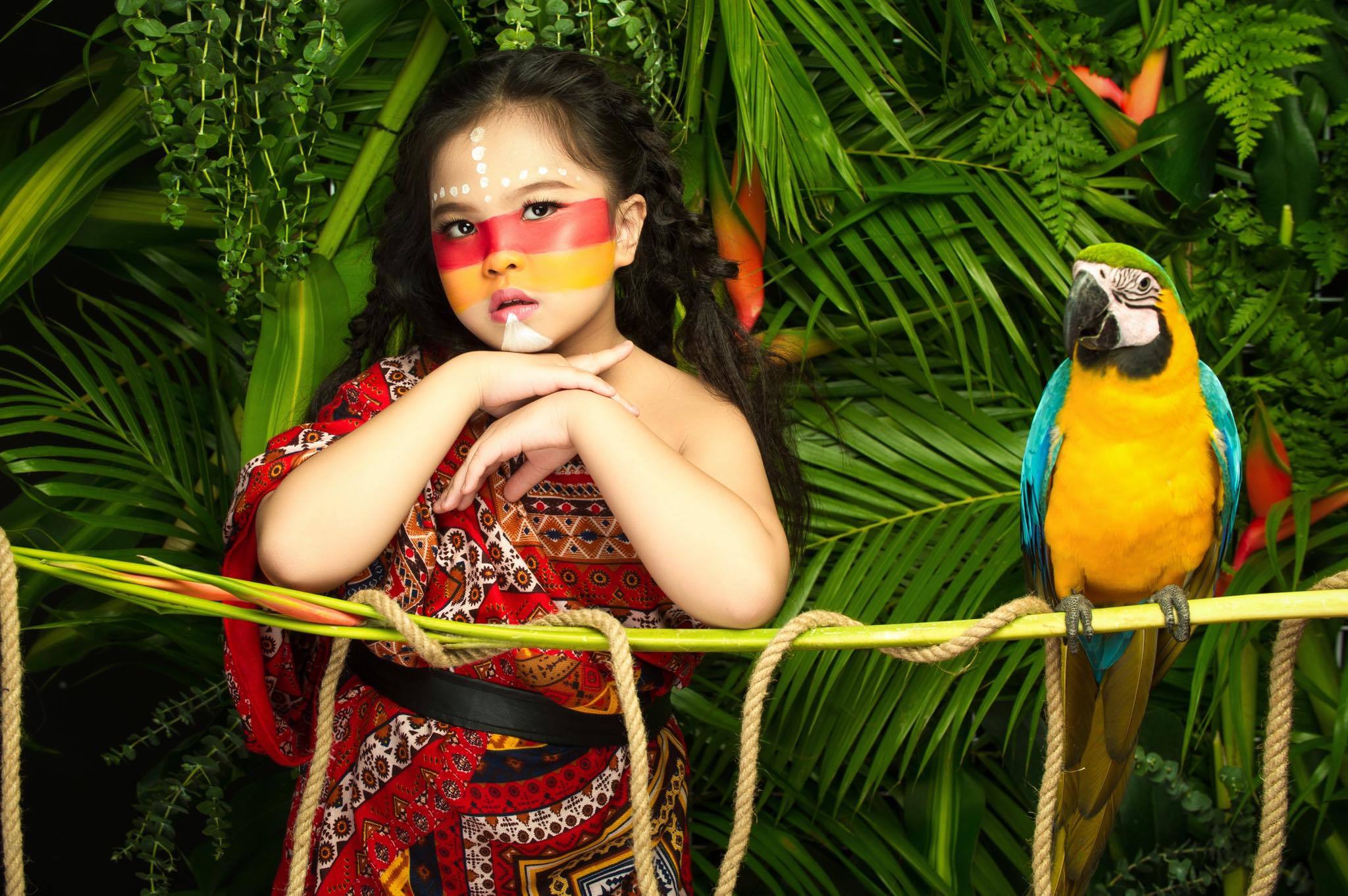 Vượt qua nỗi sợ hãi, mới đây 'bé Ù' khiến mọi người phải trầm trồ trước sự bạo dạn khi tham gia buổi photoshoot cùng bạn diễn đặc biệt là trăn, rồng đất và vẹt Nam Mỹ trong bộ ảnh "Rừng nhiệt đới" của NTK Phương Hồ.