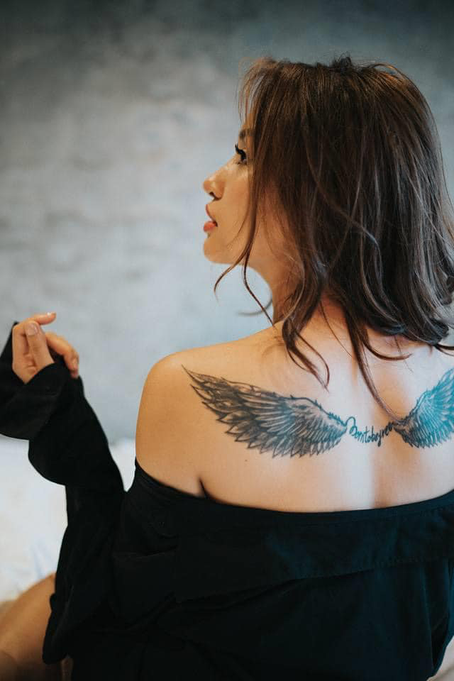 Trong hình, Vân Hugo diện những trang phục gợi cảm khoe đường cong nuột nà. Nữ MC còn để lộ hình xăm lớn sau lưng là một đôi cánh thiên thần. Ngoài ra, Vân Hugo còn hai hình xăm ở ngực và đùi. Được biết, nữ MC đã tự make-up, lựa chọn trang phục trước khi thực hiện bộ ảnh này.