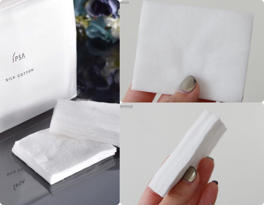 - Một miếng bông có thể tách ra 3 - 4 miếng nhỏ để đắp lotion mask, kết cấu không viền giống Muji nhưng khi tách mỏng bông IPSA không bị dính sợi bông lên da nên rất hợp để đắt lotion mask.