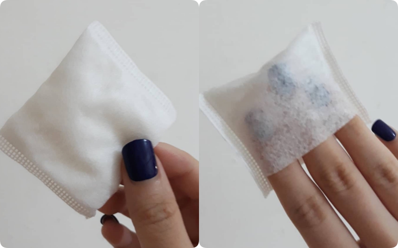 - Miếng bông có 2 lớp để bạn luồn ngón tay vào dễ dàng hơn trong bước loại bỏ lớp trang điểm bám trụ trên da cả ngày dài.